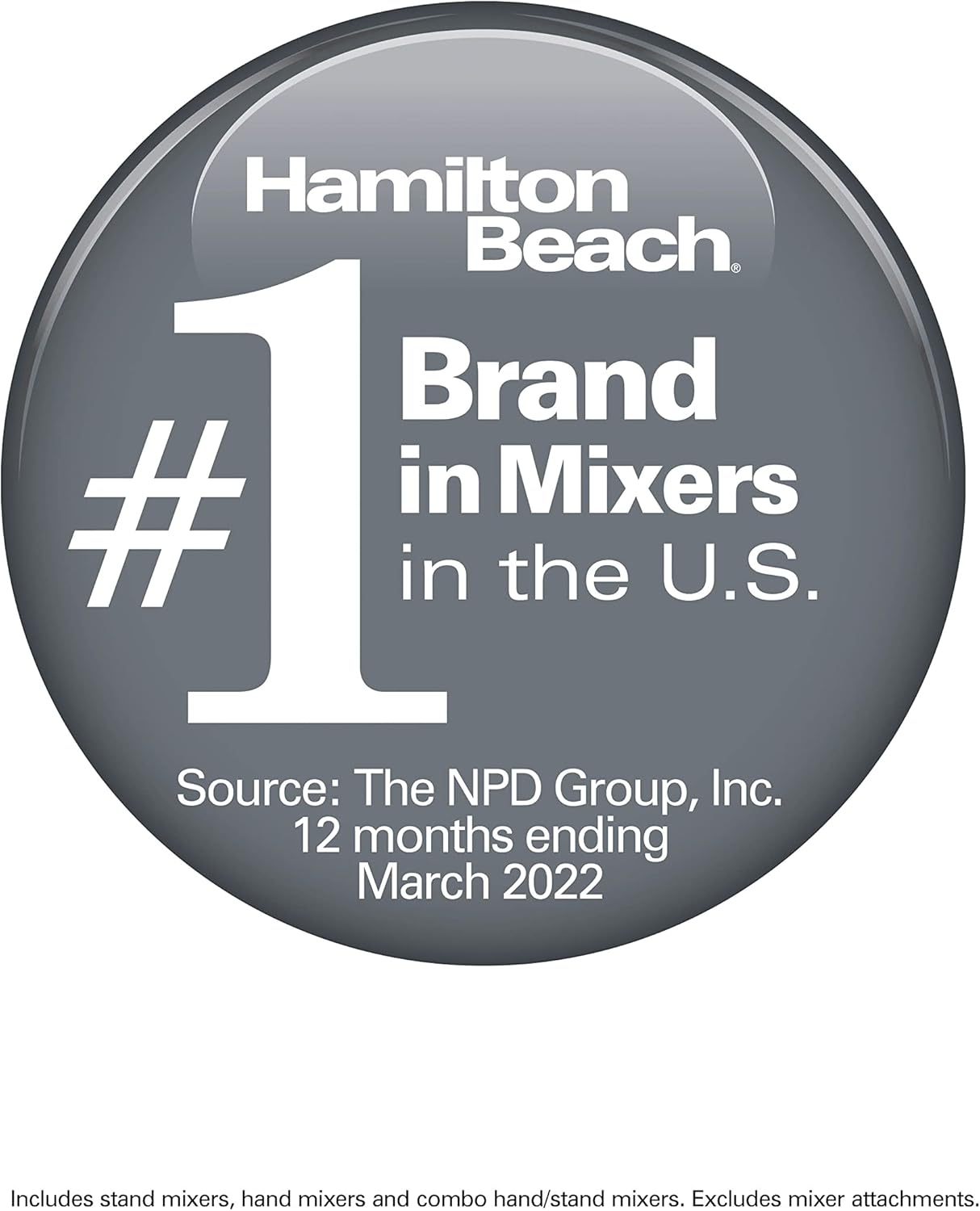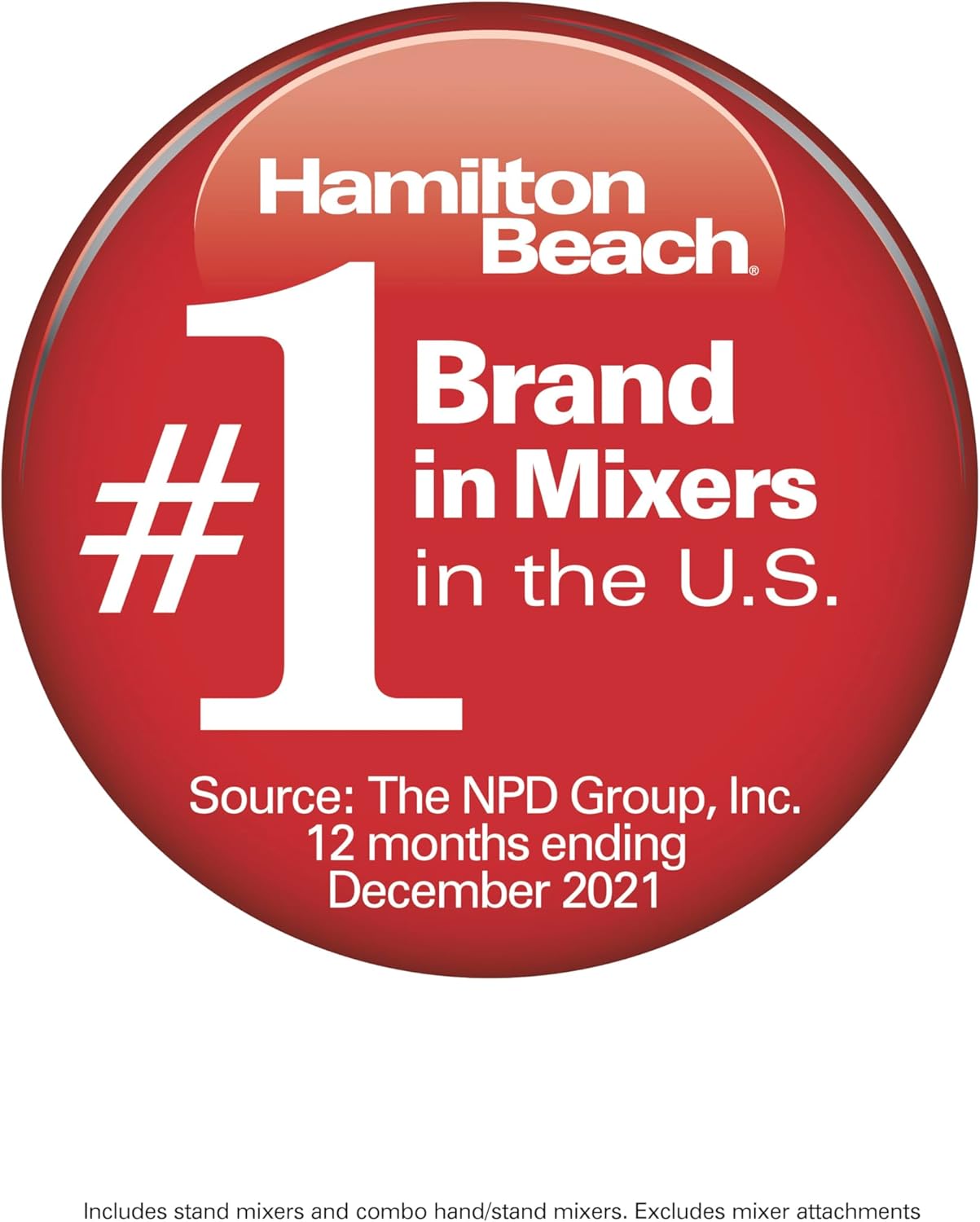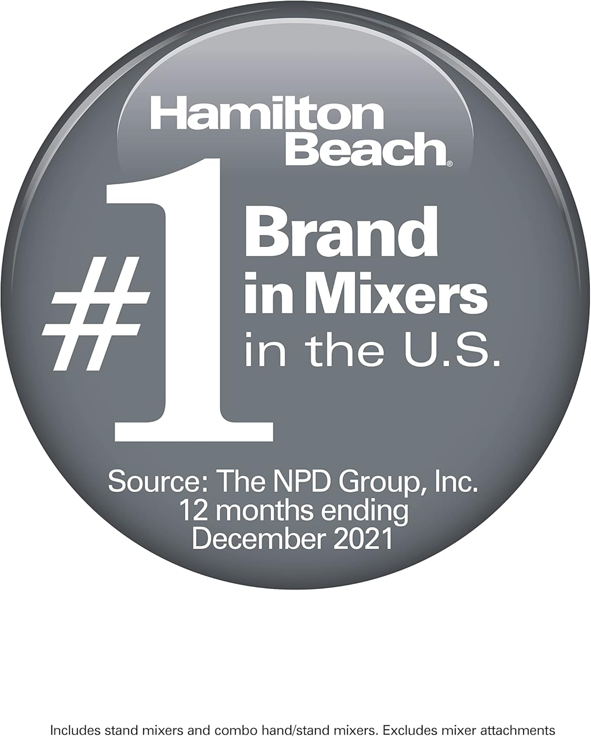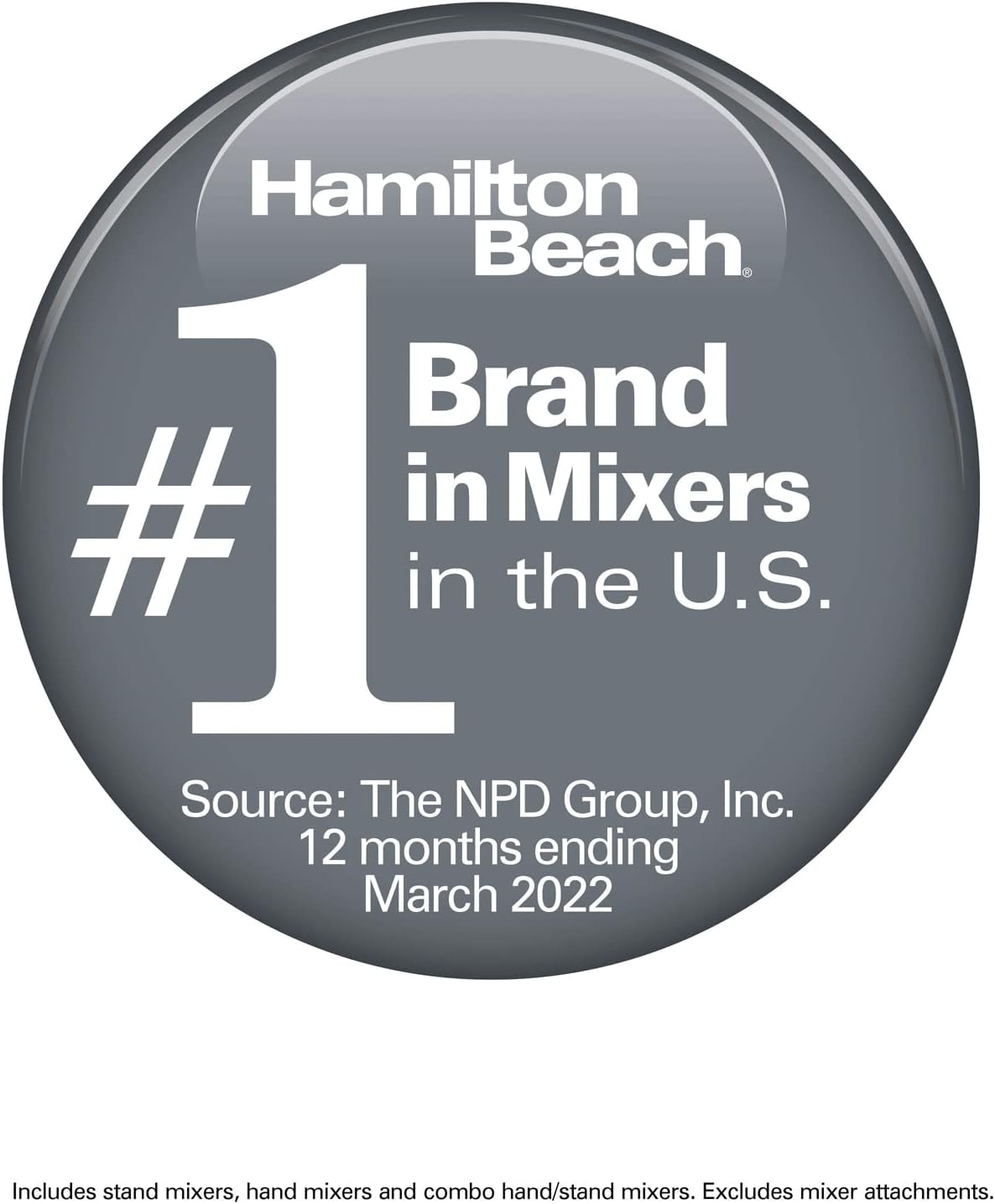 • Hamilton Beach Classic Stand and Hand Mixer, 4 Quarts, 6 Speeds with QuickBurst, Bowl Rest, 290 Watts Peak Power, Black and Stainless