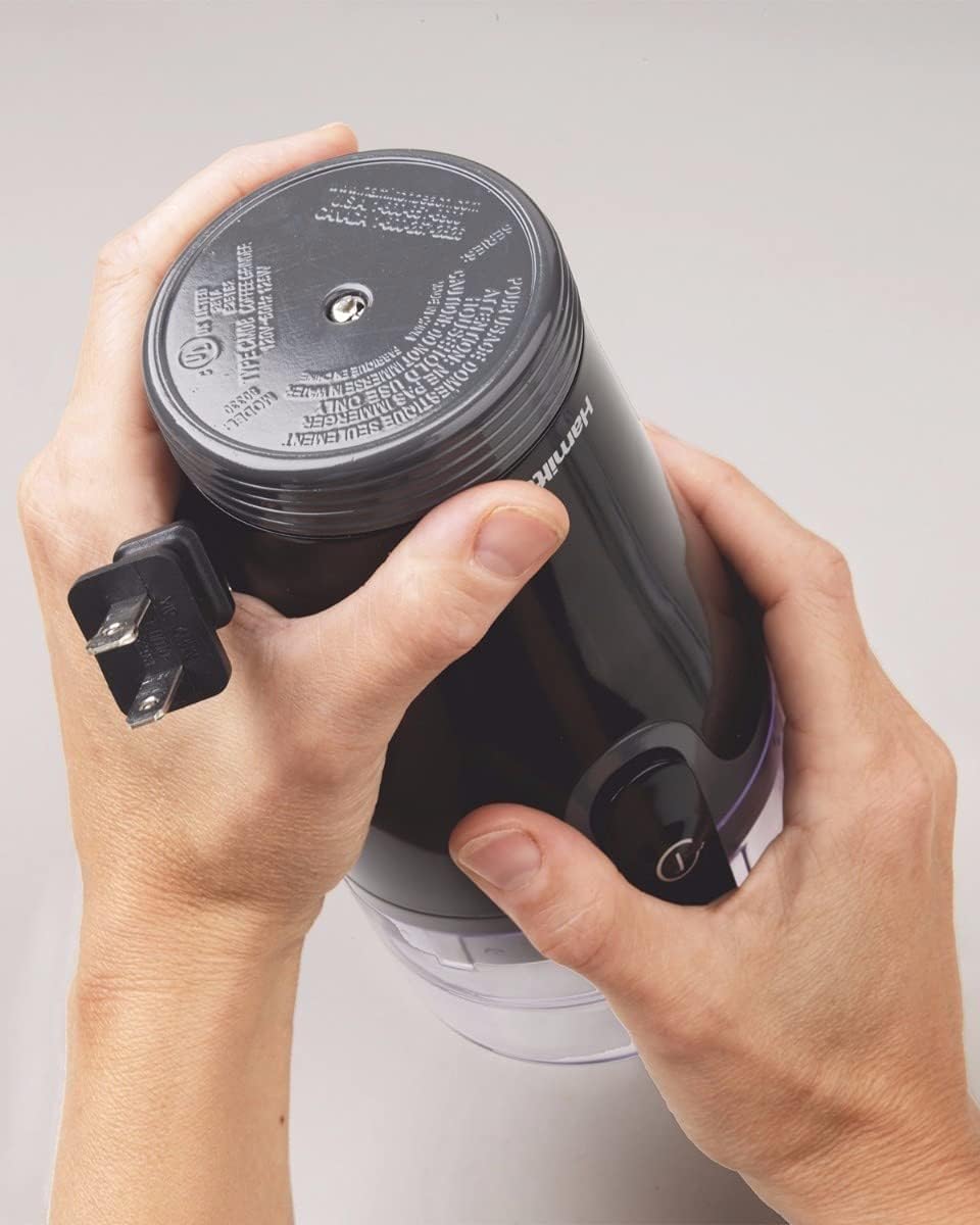 - SIMPLE & INTUITIVE: The coffee grinder is so easy to use that you'll want to drink flavorful coffee made from freshly ground coffee beans everyday. Just place the lid on the grinder and press the button to grind coffee. Release to stop grinding.