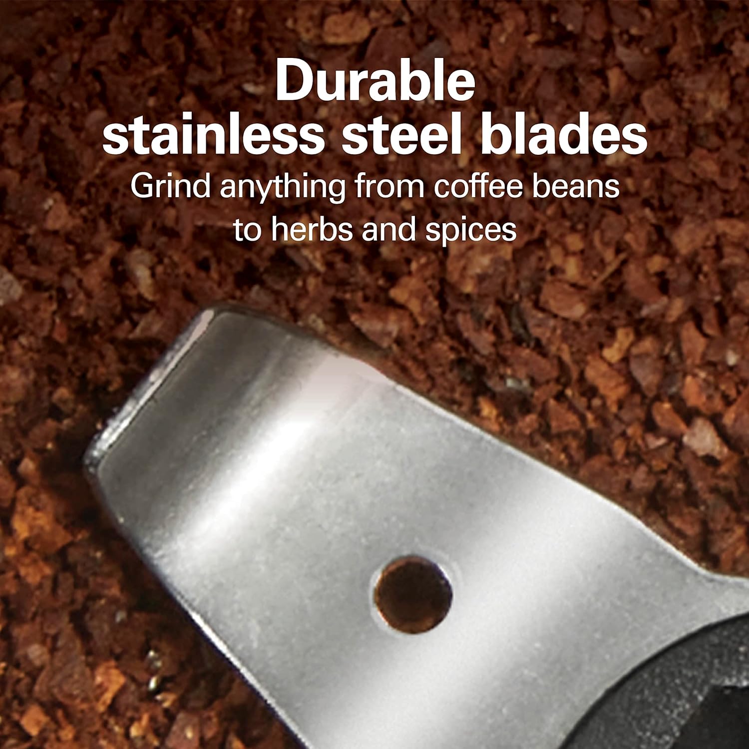 - DURABLE STAINLESS STEEL BLADES: With the durable stainless steel blades, this grinder makes easy work of grinding everything from coffee beans to herbs and spices.