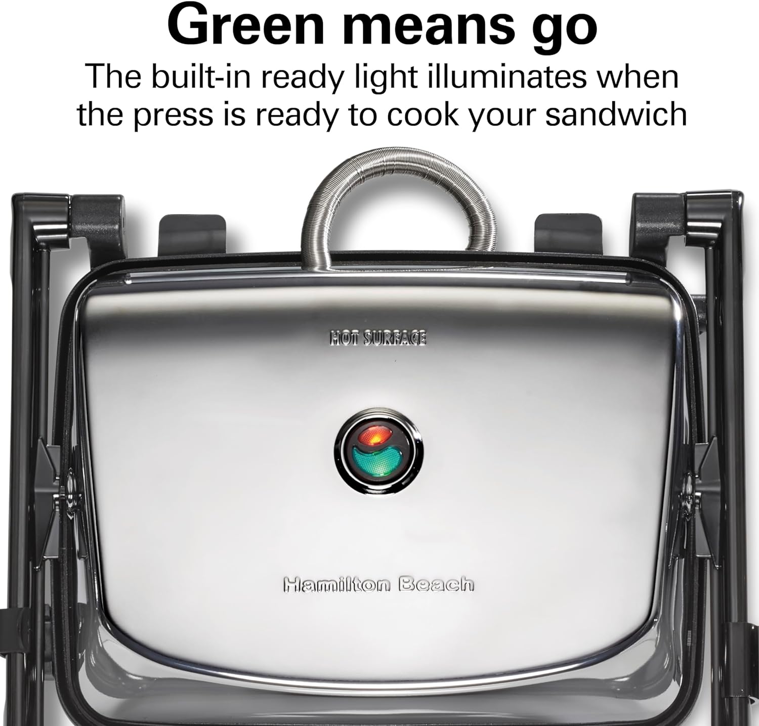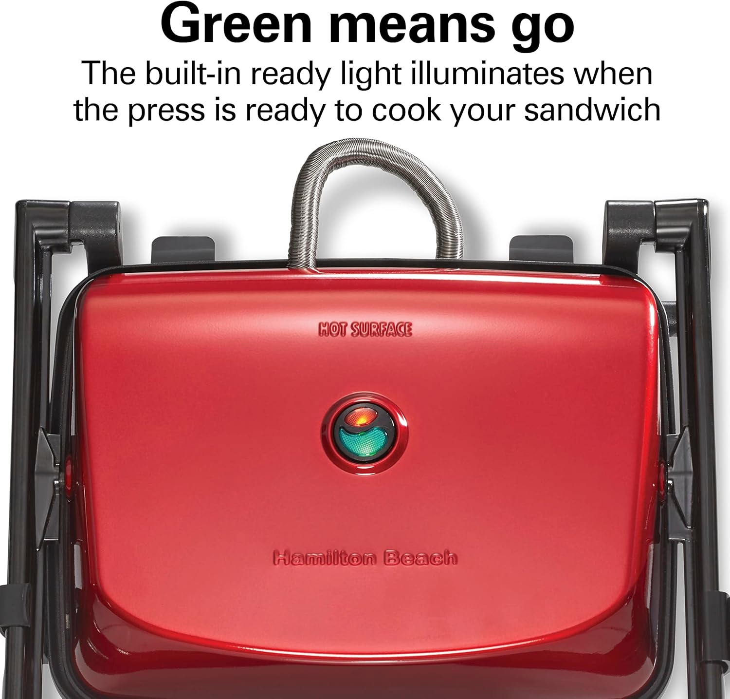 - GREEN MEANS GO: For best results, preheat sandwich maker 6 minutes before use. Built-in ready light will turn green when the press is ready to cook your sandwich.