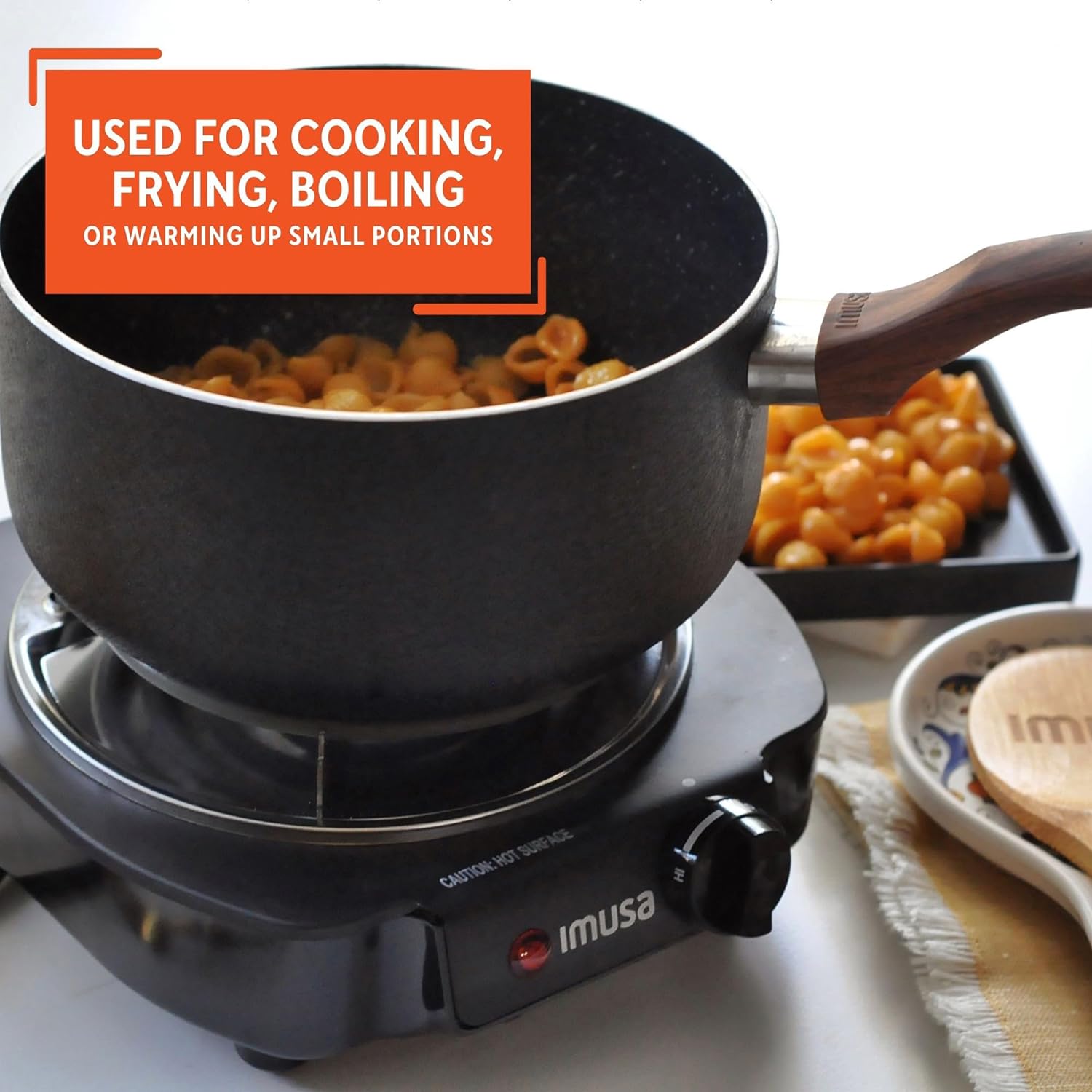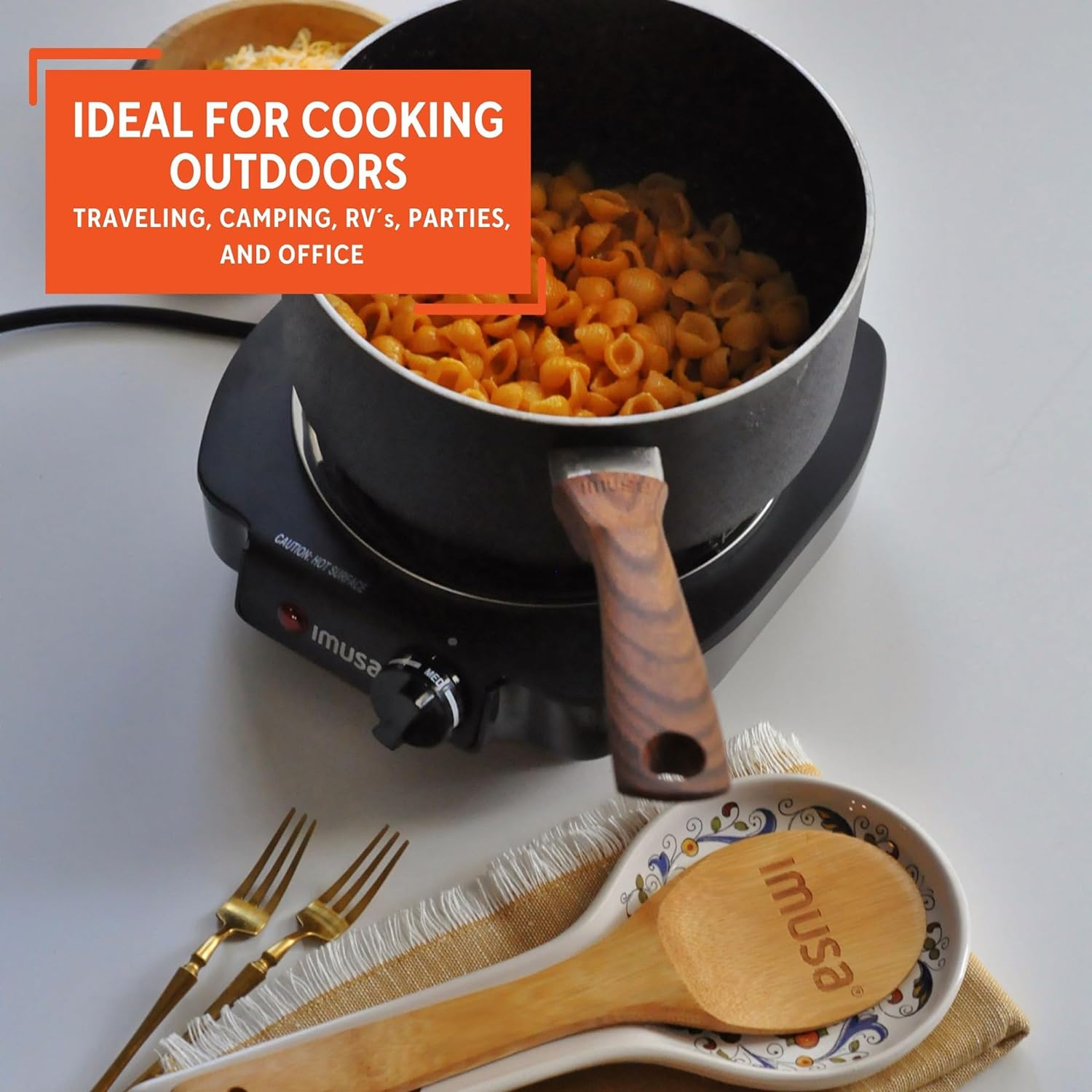 - Features a Temperature Regulating Knob with Heat Distribution Coils