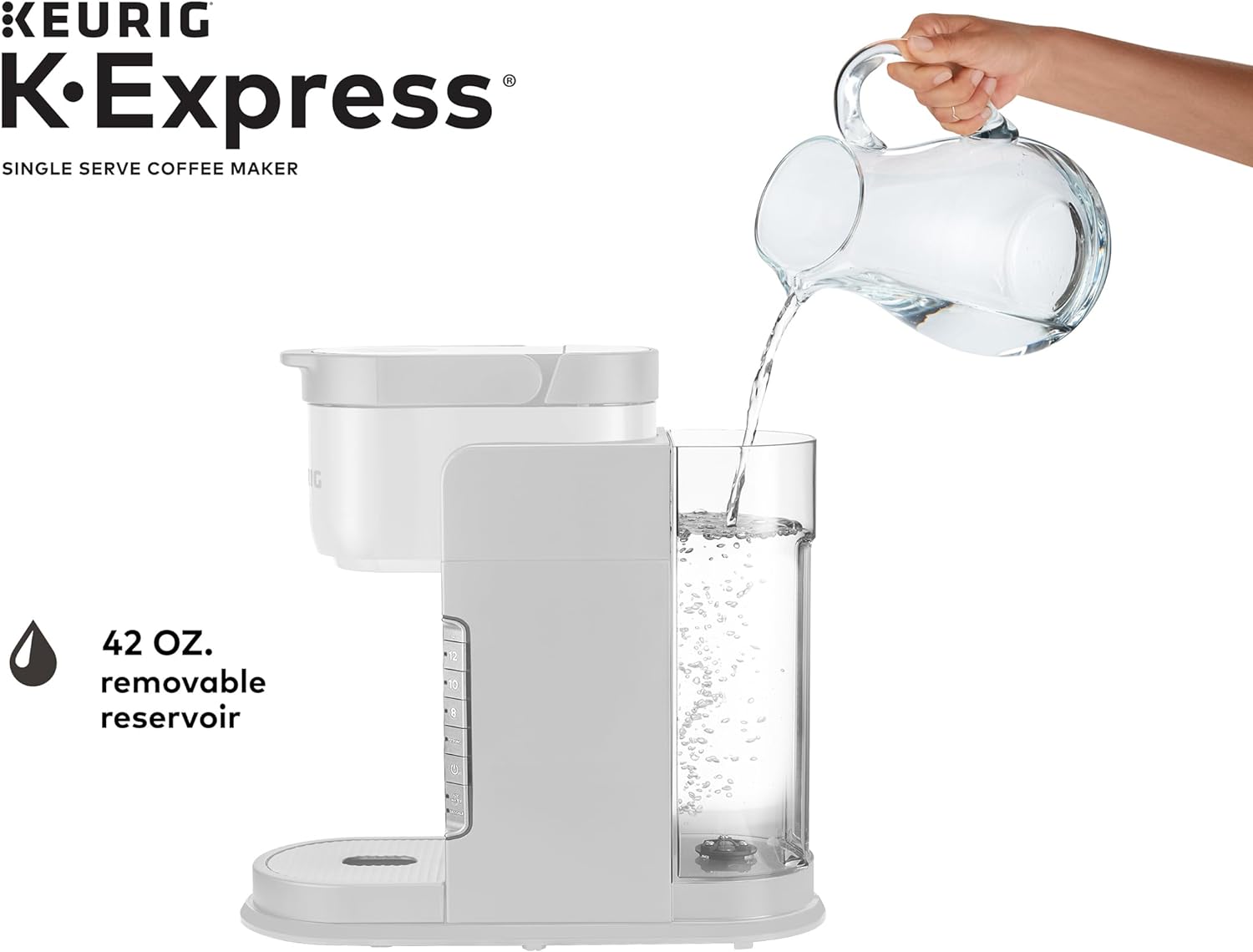 - MULTIPLE CUP WATER RESERVOIR: 42oz. removable reservoir lets you brew up to 4 cups before refilling. 8 oz. cup size