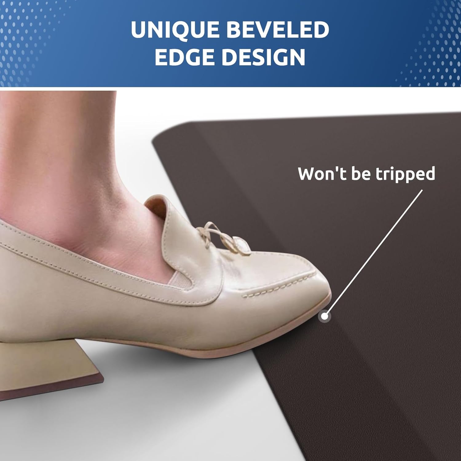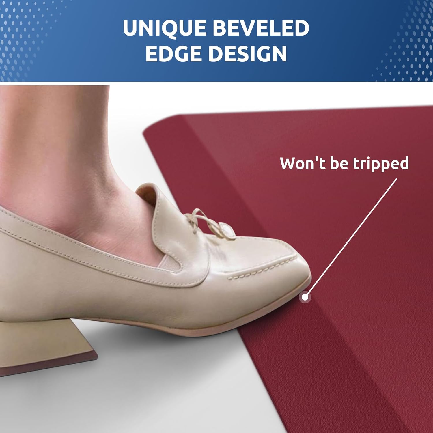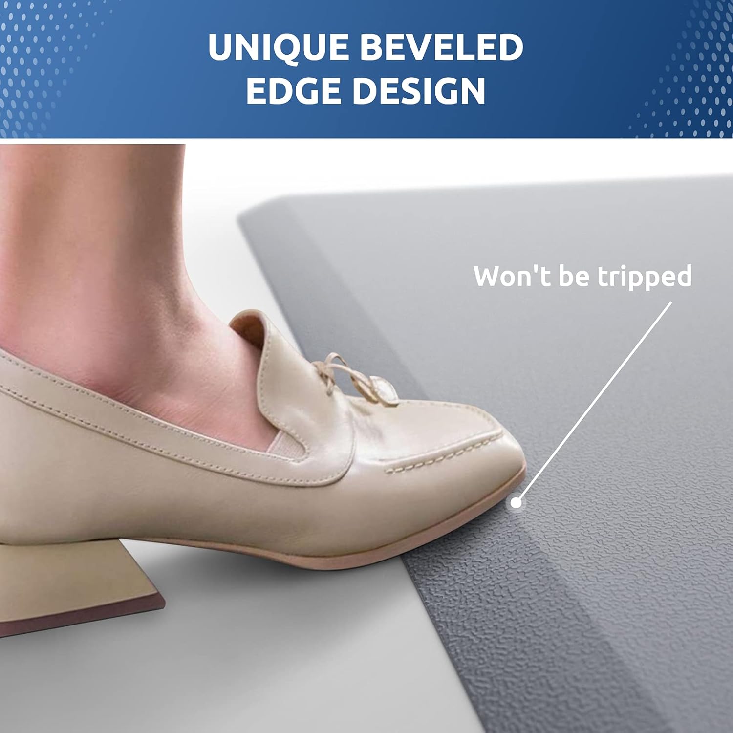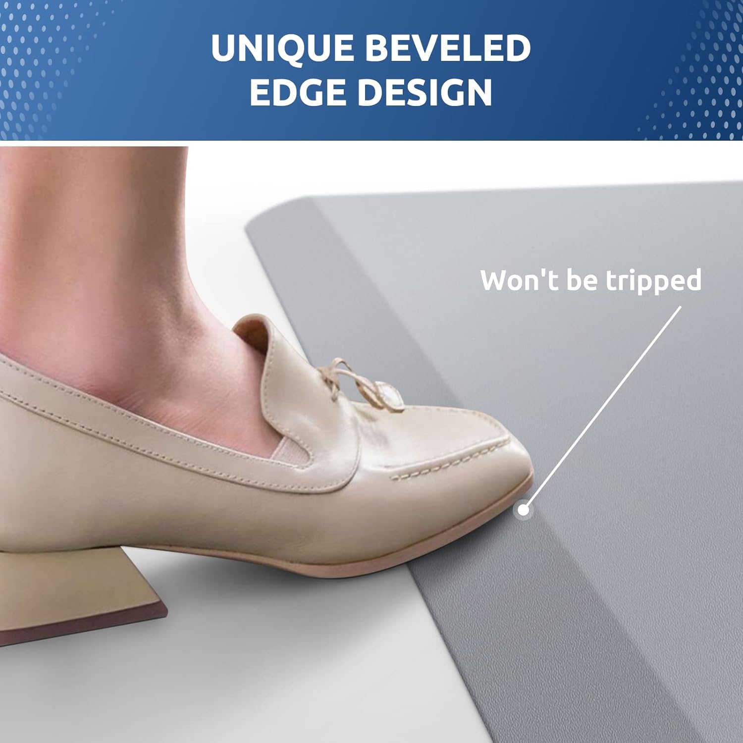 • SAFETY DESIGN: the diamond-shaped design on the bottom of anti fatigue mats keeps the mat in place and prevents slippage; the bevel edge reduces the risk of tripping on the mat