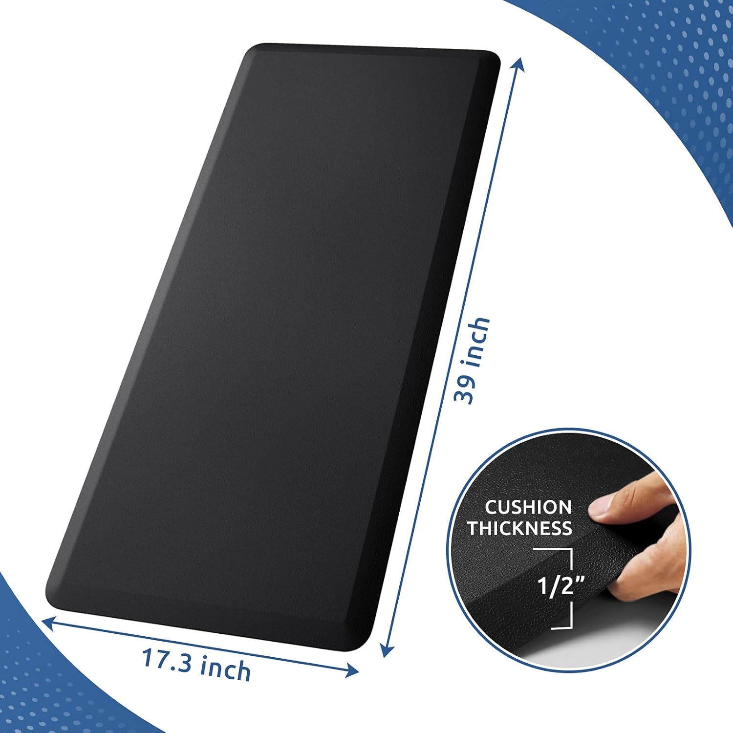 • KitchenClouds Kitchen Mat Cushioned Anti Fatigue Rug 17.3"x28" Waterproof, Non Slip, Standing and Comfort Desk/Floor Mats for House Sink Office (Black)