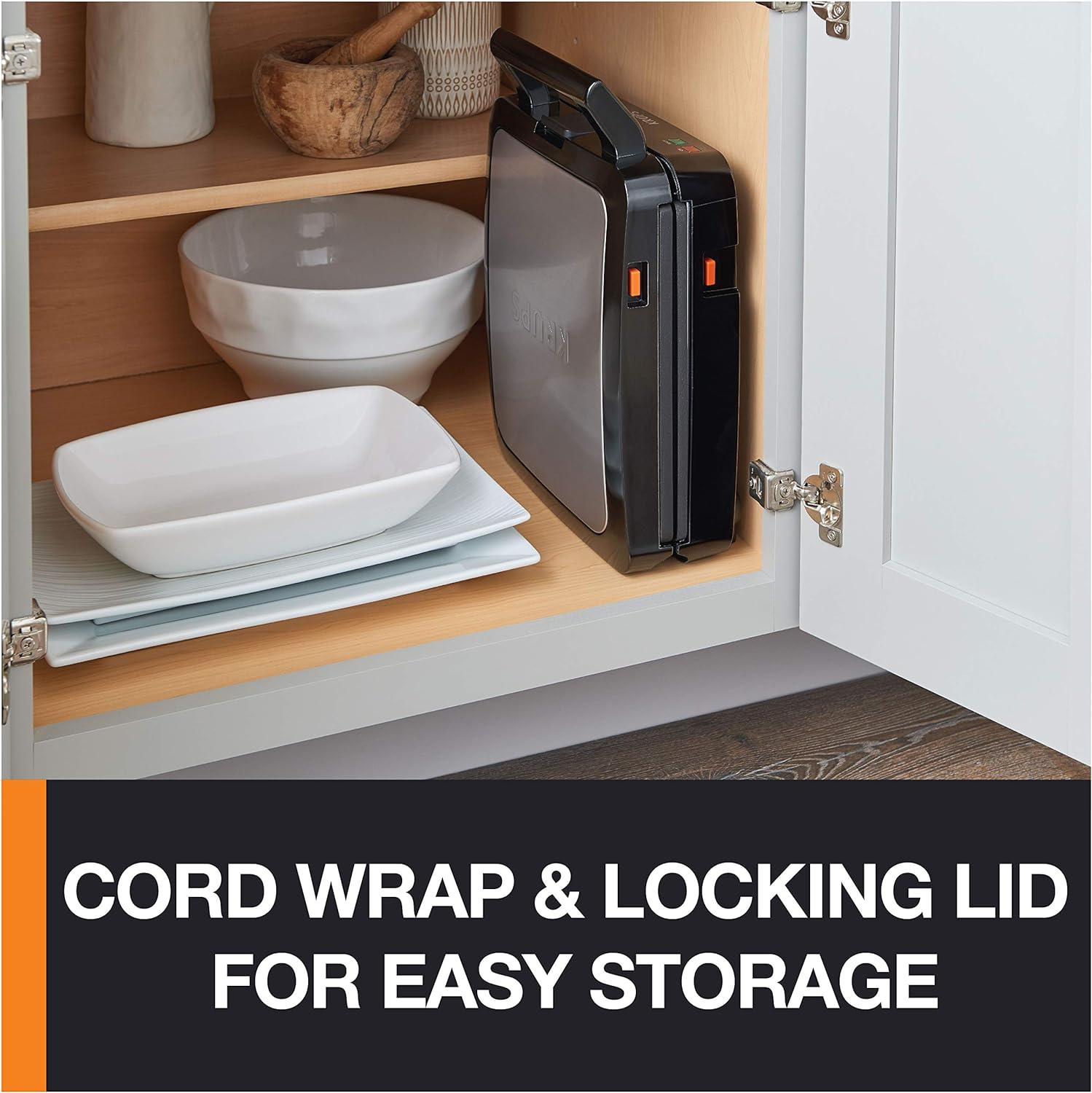 - 𝐒𝐥𝐞𝐞𝐤 𝐒𝐭𝐚𝐢𝐧𝐥𝐞𝐬𝐬 𝐒𝐭𝐞𝐞𝐥 𝐃𝐞𝐬𝐢𝐠𝐧: Waffle maker with stainless steel housing offers modern style; cord wrap and handle lock for convenient, compact storage.