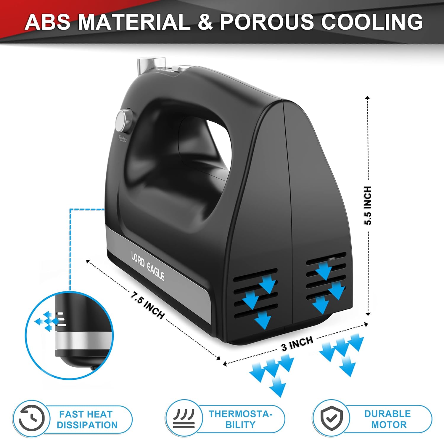 - 5 STAINLESS STEEL ACCESSORIES - Easy to clean and dishwasher safe. 2 × Dough Hooks for whipping dough, 2 × Beaters 1 × Whisk for eggs and creams, No rust and fall off will appear after long time use