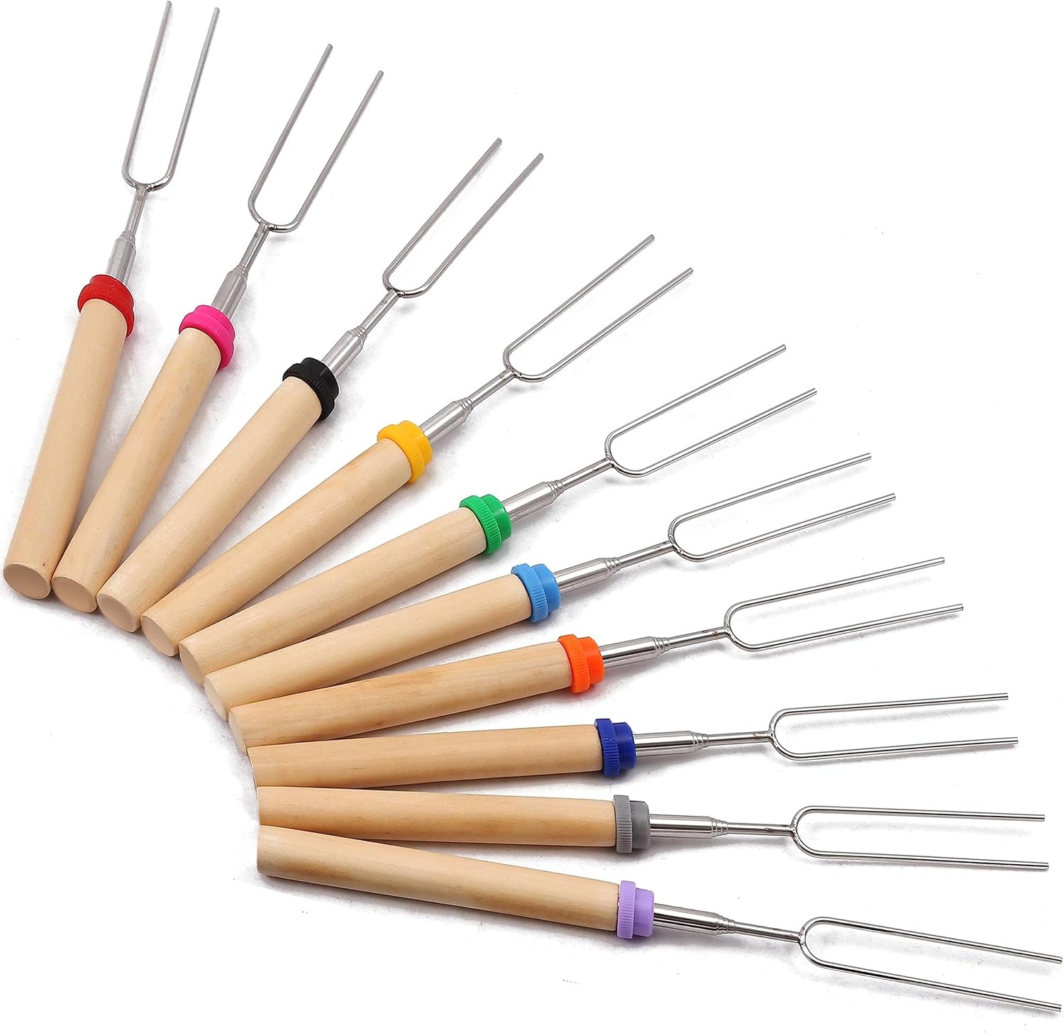 - THE ULTIMATE SMORES MAKER - Let your mouth water after combining your gooey roasted marshmallows to graham crackers and chocolate. Each fork features two perfectly spaced prongs on a strong telescopic arm for maximum control, preventing marshmallows, hot dogs, and veggies from easily spinning on the fork when cooking.