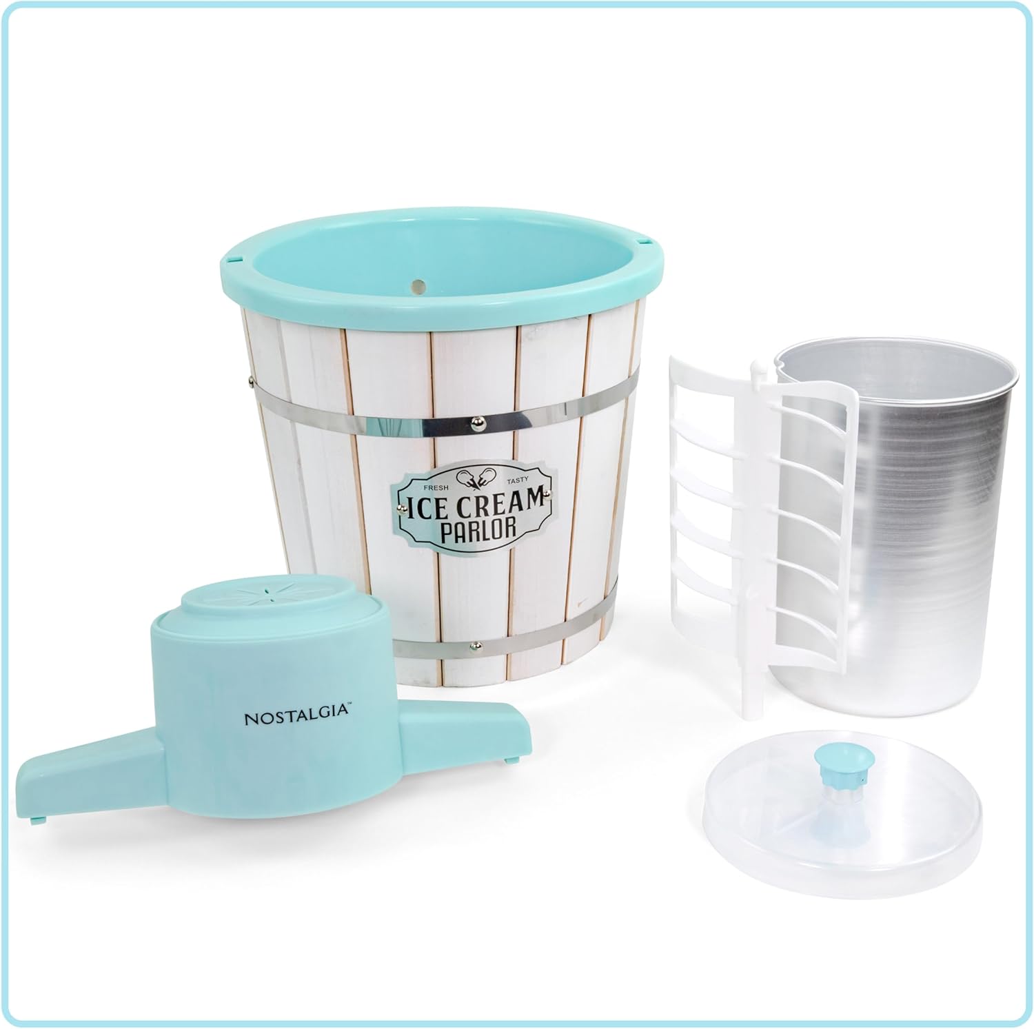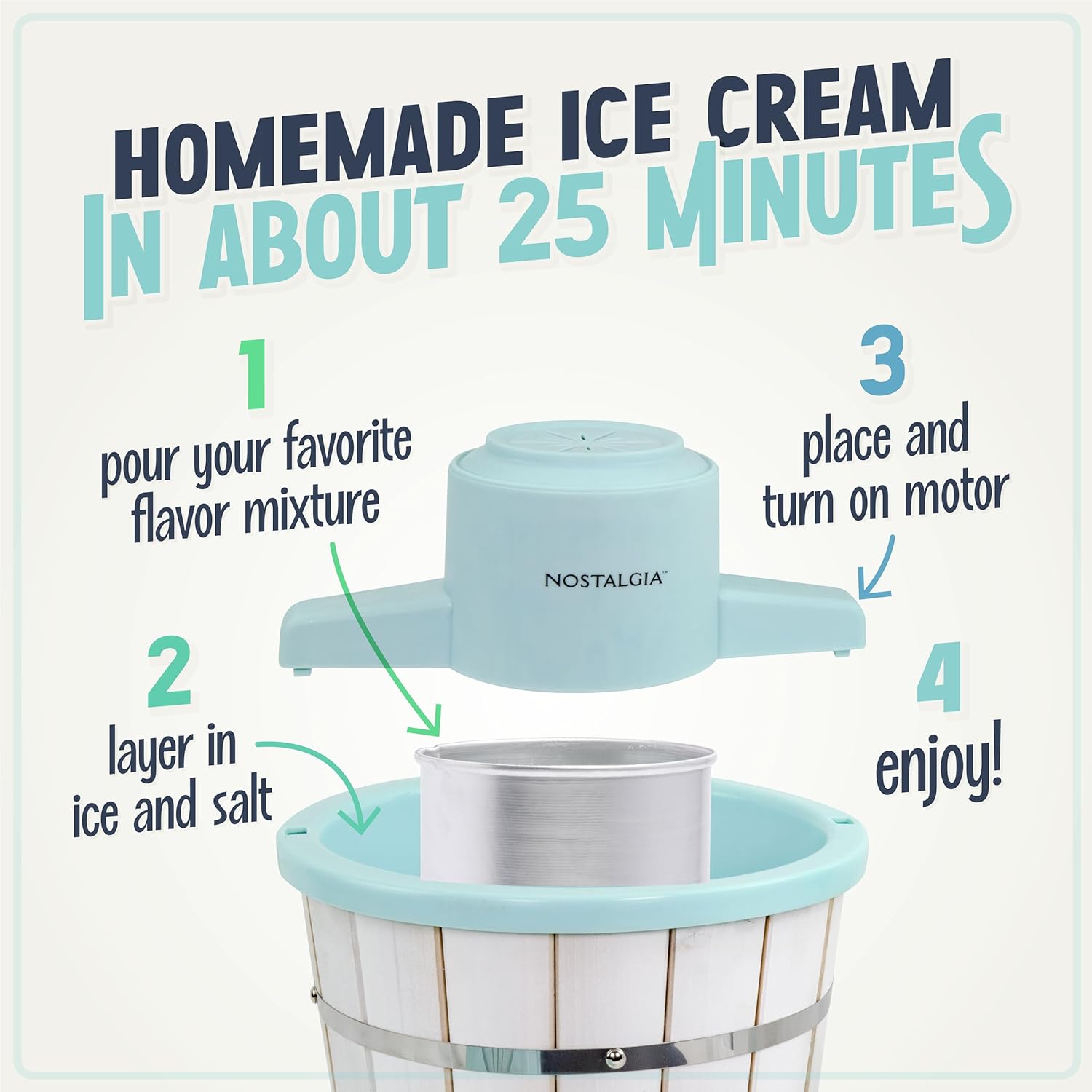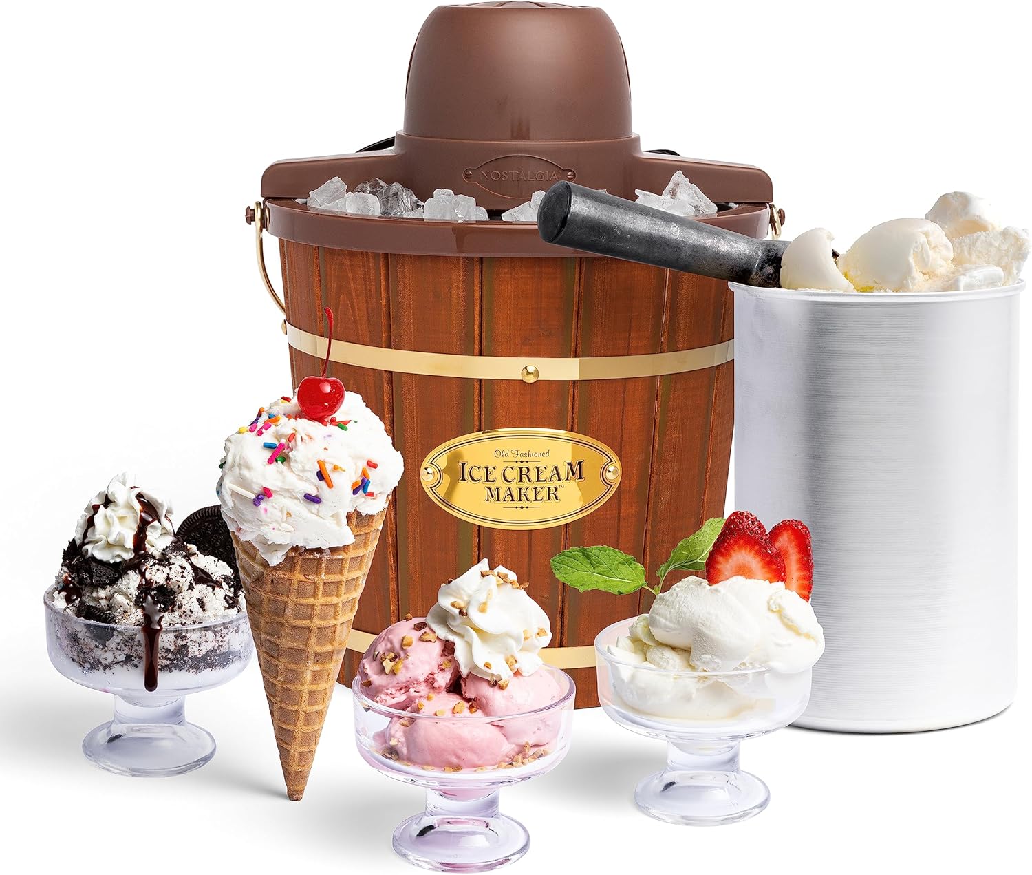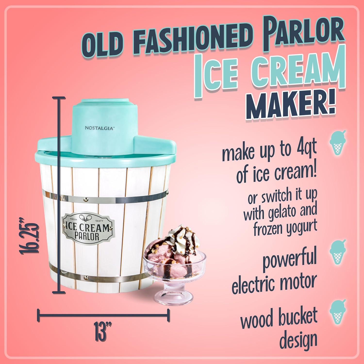 • Nostalgia Electric Ice Cream Maker - Old Fashioned Soft Serve Ice Cream Machine Makes Frozen Yogurt or Gelato in Minutes - Fun Kitchen Appliance - Vintage Wooden Style - Light Wood - 4 Quart
