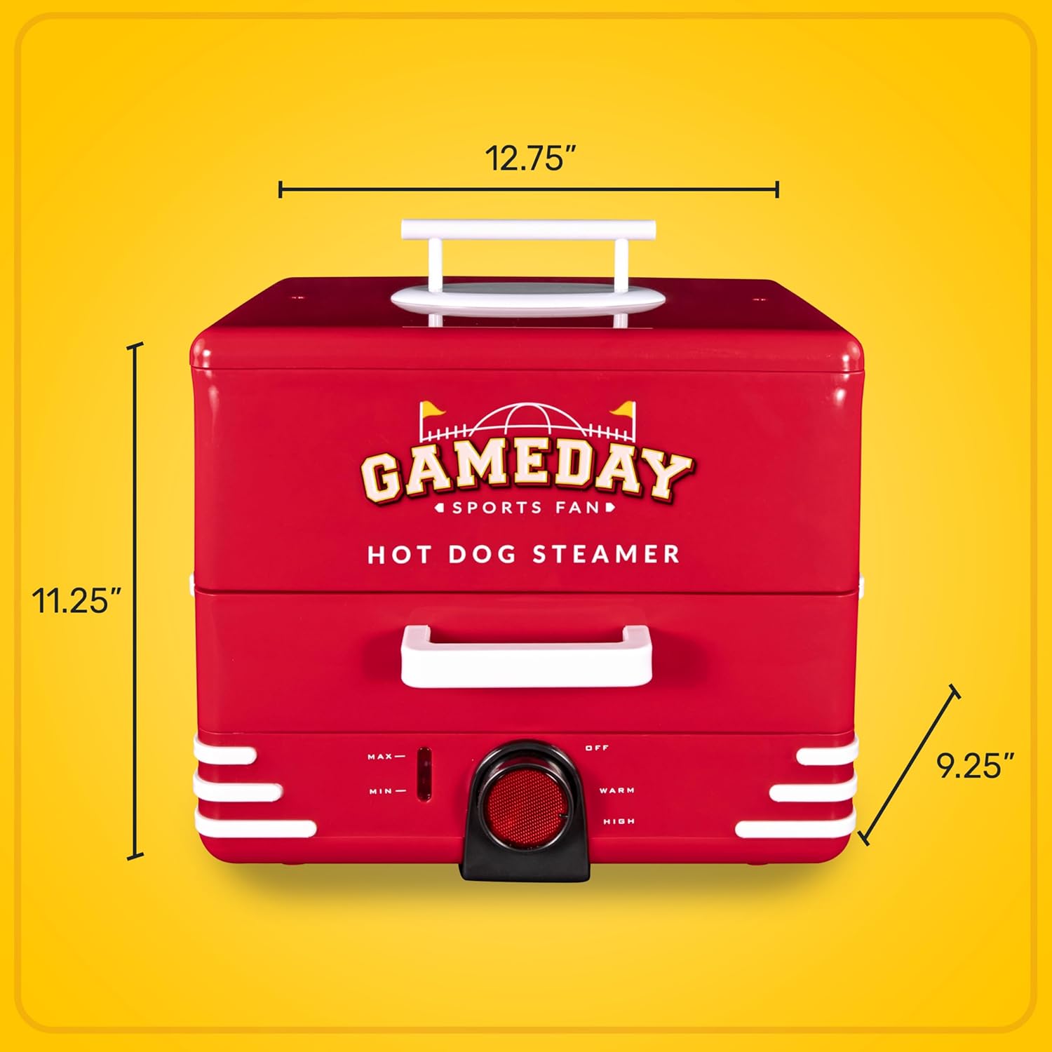 • Nostalgia Extra Large Diner-Style Coca-Cola Hot Dog Steamer and Bun Warmer, 24 Hot Dog and 12 Bun Capacity, Steam Bratwursts, Sausages, Vegetables, Fish, Dumplings, Red