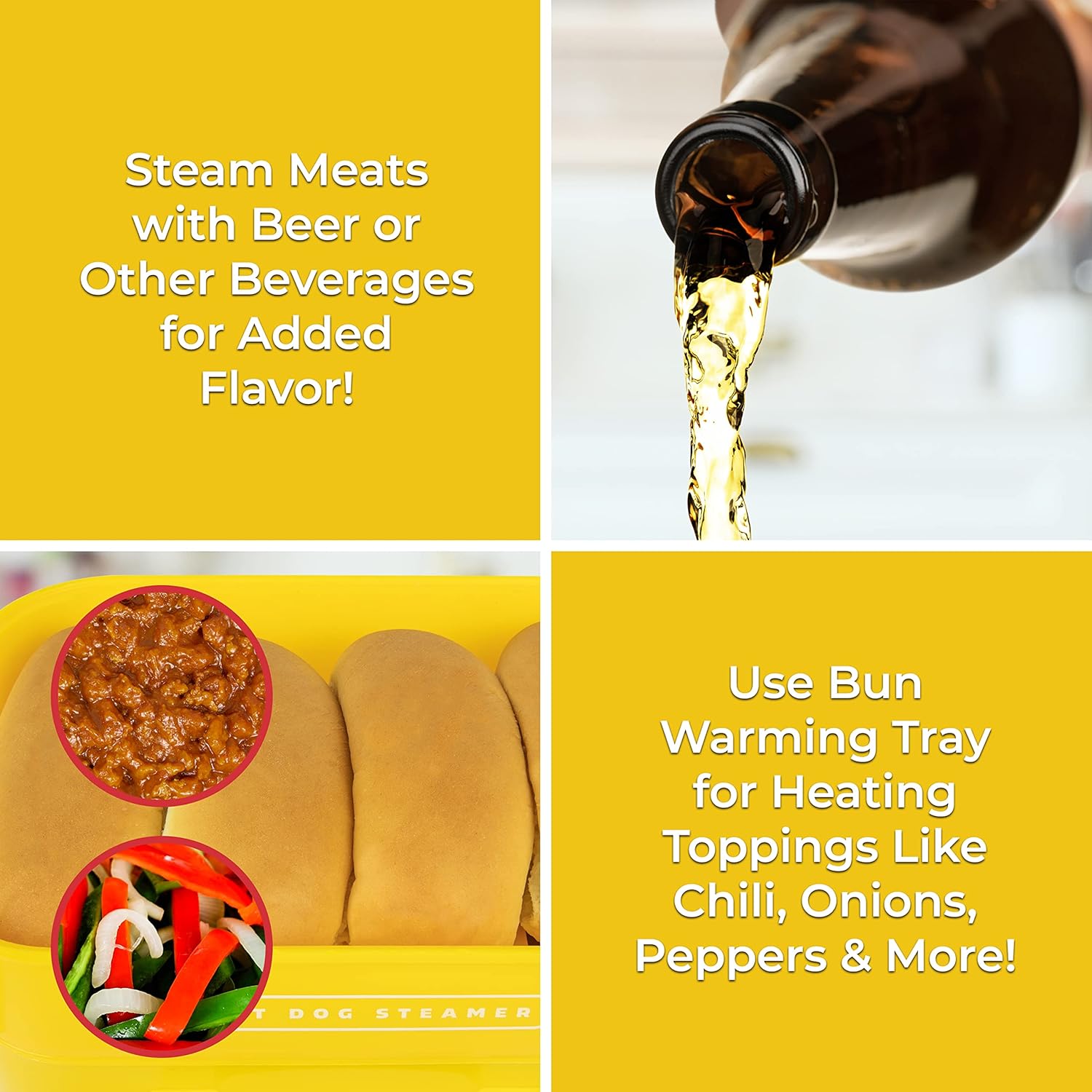 • GREAT STYLE & GREAT TASTE: Diner-style hot dog steamer cooks up to 20 hot dogs at a time, and can steam breakfast sausages, bratwursts, vegetables, fish, dumplings and more!
