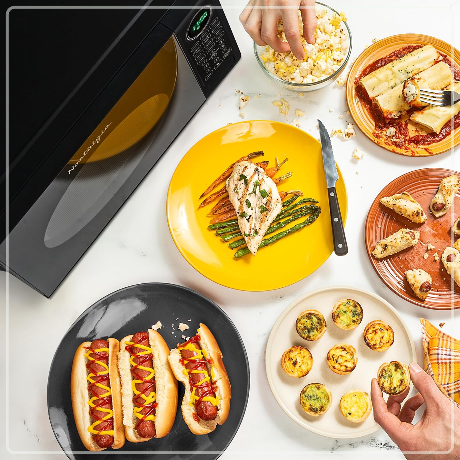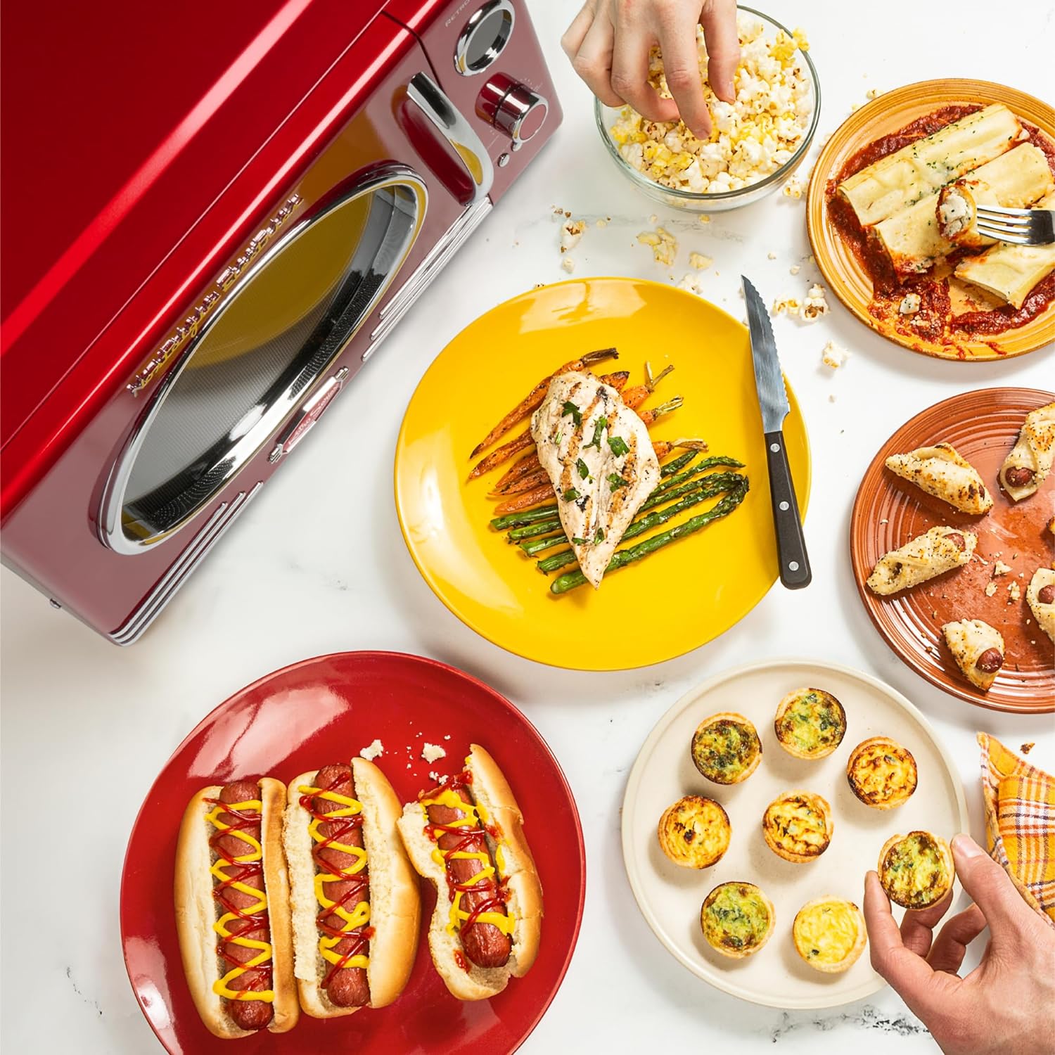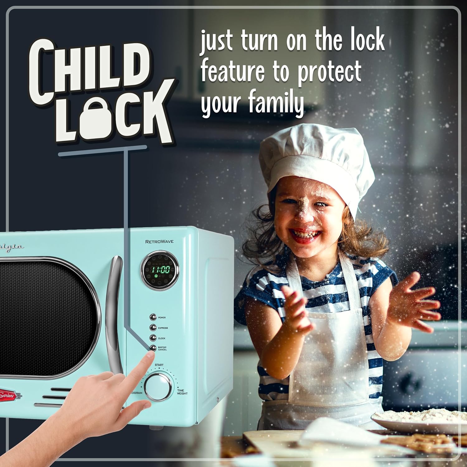 - Retro Accents : A sleek chrome door handle, control panel and accents add fun and flair to this unique retro-styled appliance