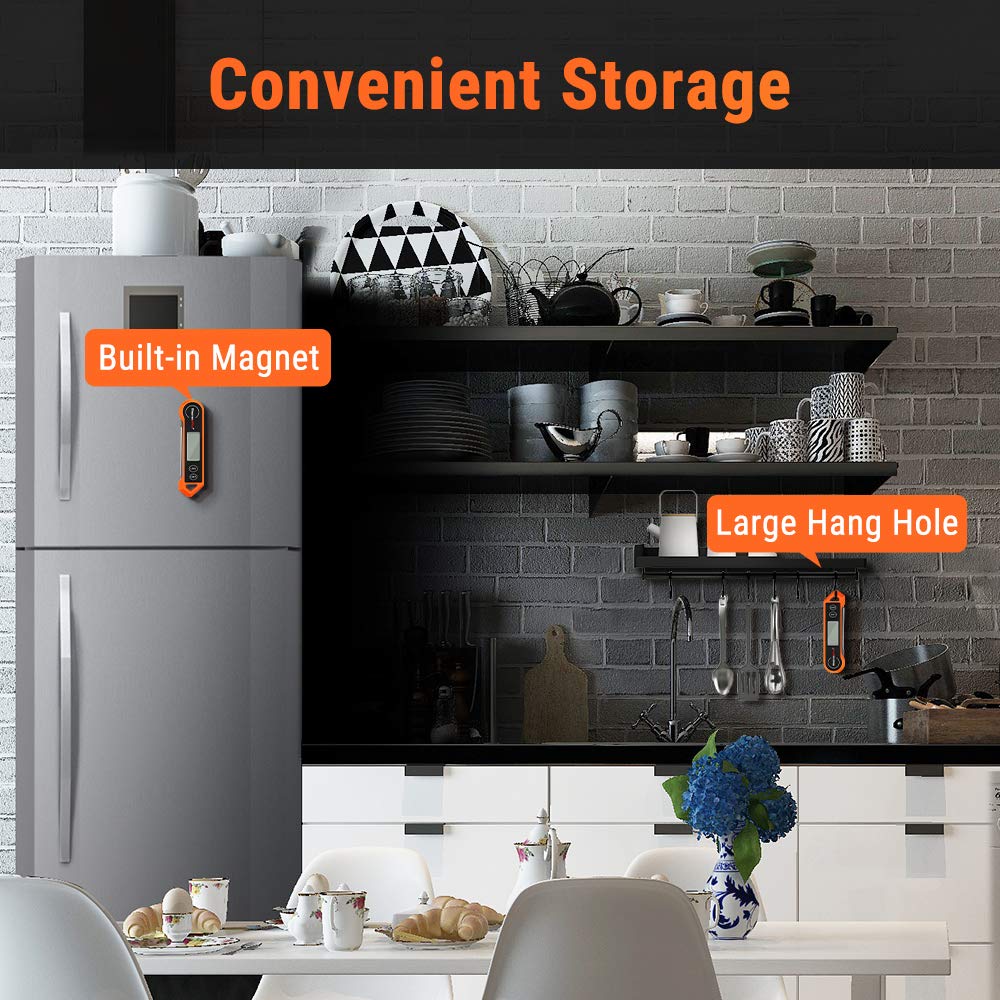 - IP65 Waterproof & Convenient Storage: Quickly clean the meat thermometers for grilling with probe under running water; features a magnetic back to allow for placement on any metal surface or use the hang hole for hooks