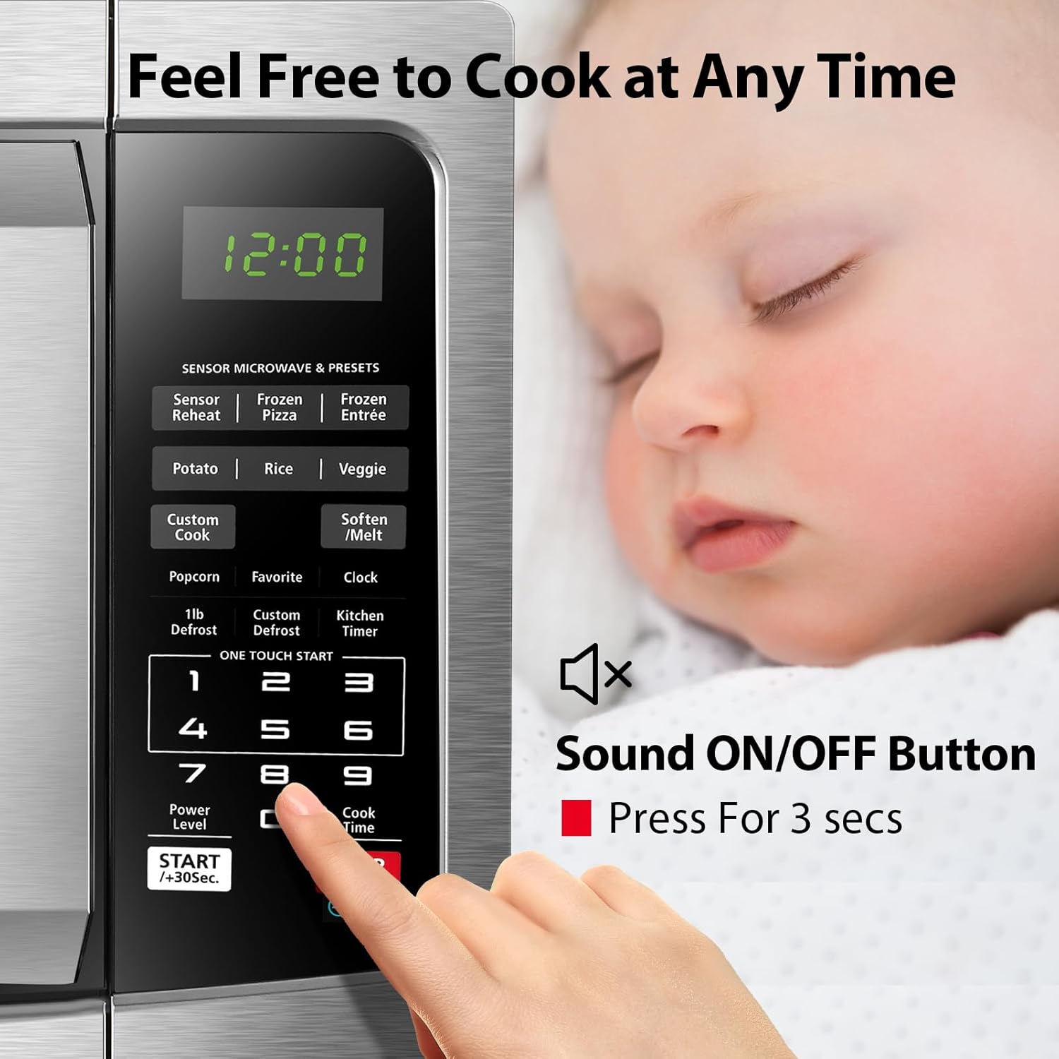 - 【Mute Function】If you wish to mute the buzzer of the mini microwave oven, please long press the button "8" for 3-5 seconds. The buzzer is automatically switched off after a long beep.