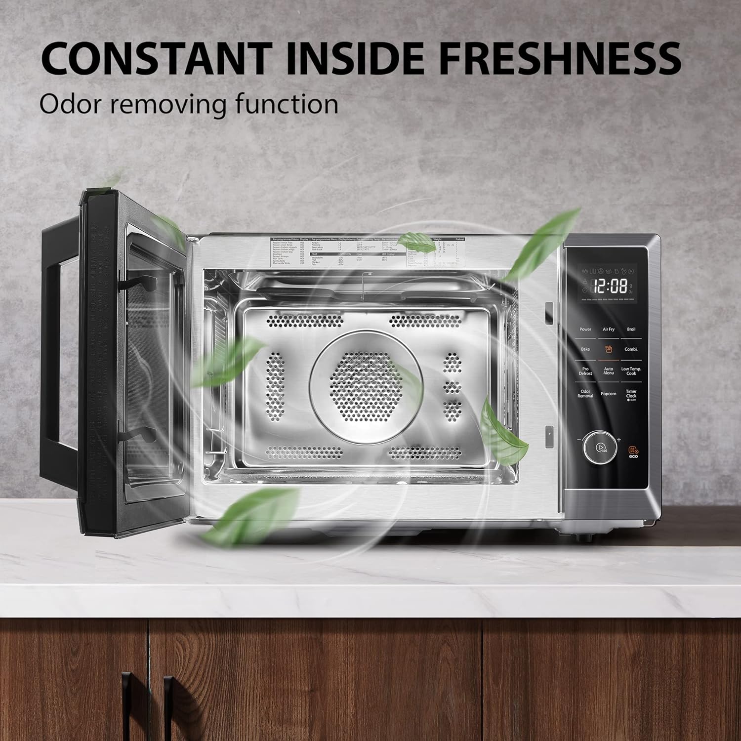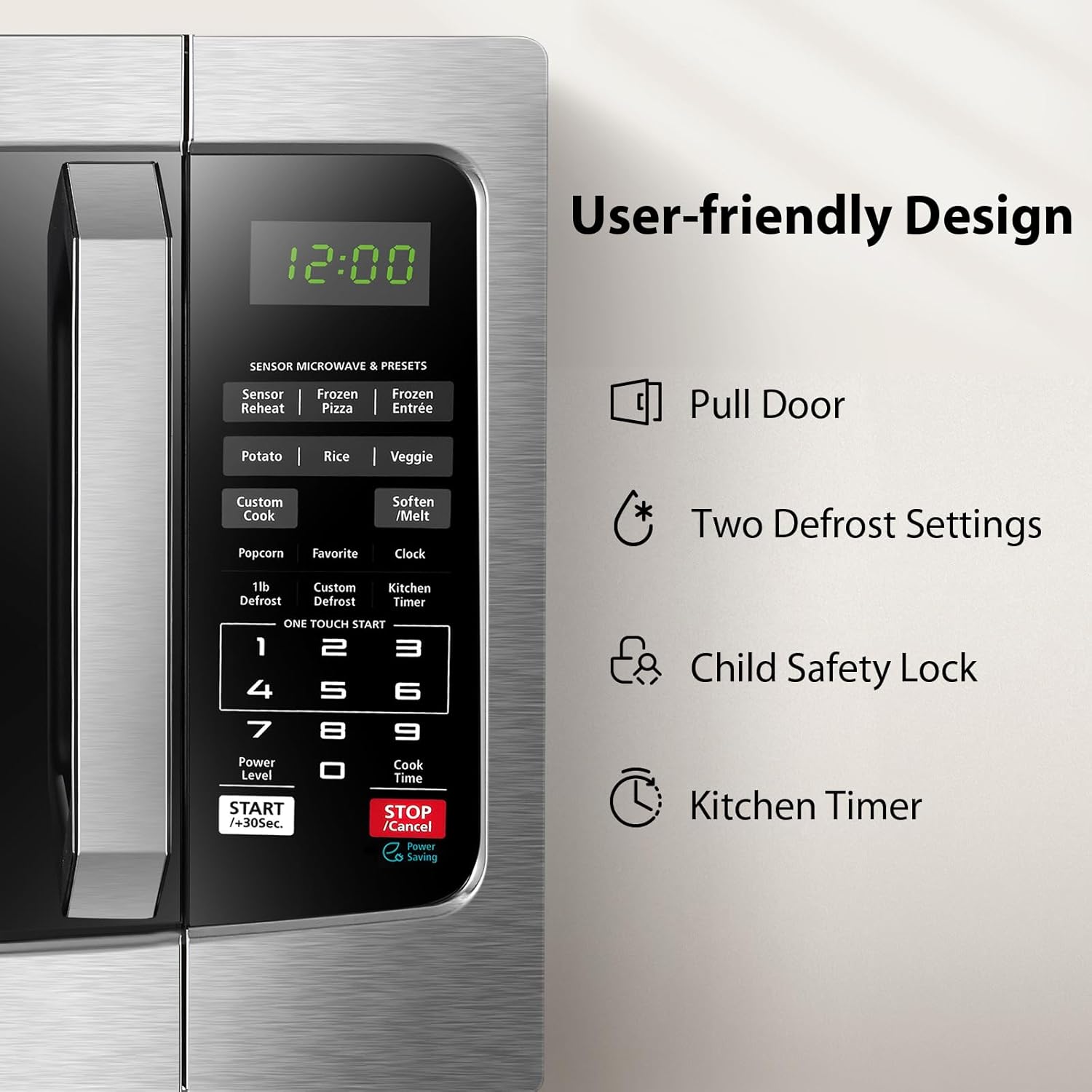 - 【Pre-programmed sensor menu】 for optimum heating of popular foods like pizza, potatoes, veggies, and more; Power Wattage (Microwave): 1100W; Rated Voltage: 120V - 60Hz.Rated Output Power : 100W (Small Microwave)