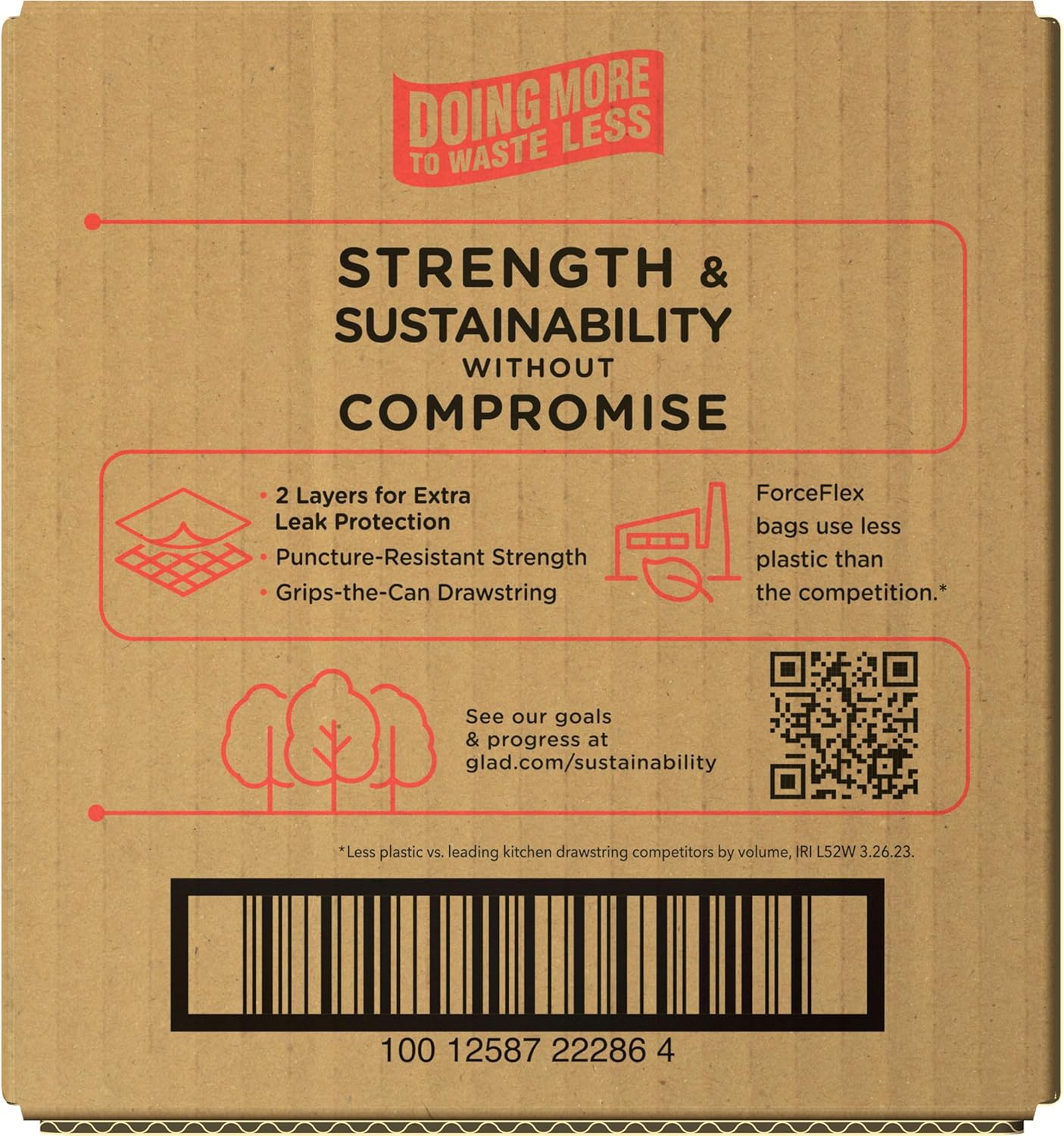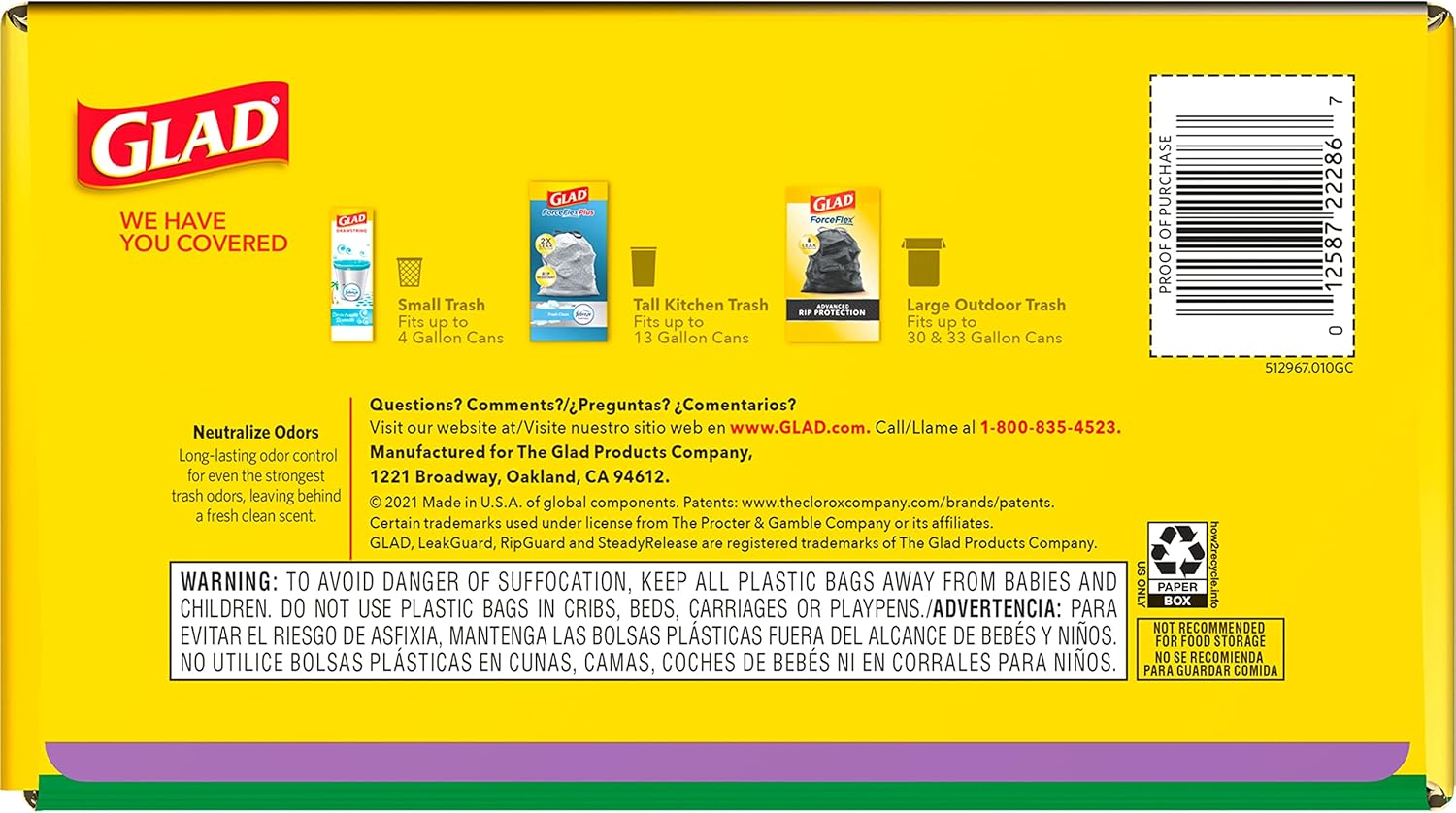 - FORCEFLEX TECHNOLOGY: Glad’s patented dual-layer protection is designed to give extra flex as it expands around sharp edges and heavy loads while resisting punctures rips and tears