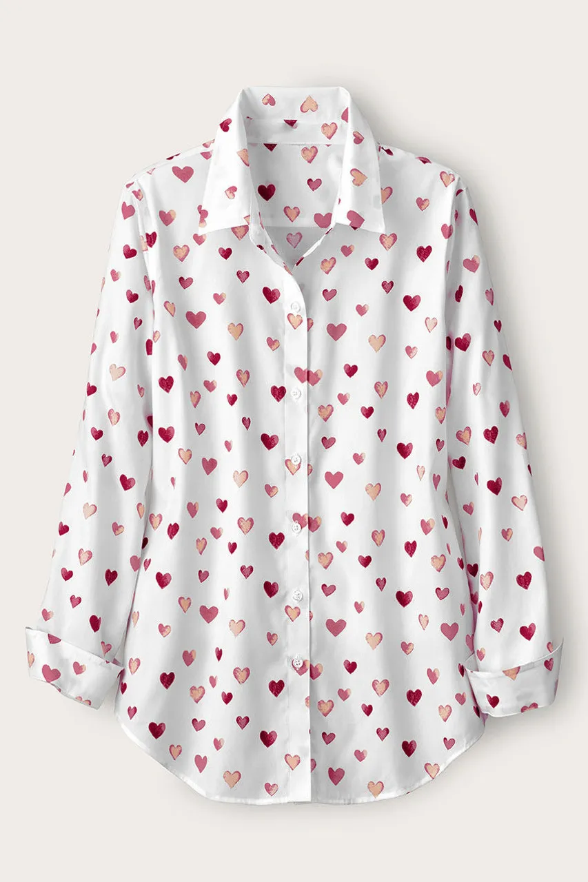 Color yourself happy, twice over – with a fresh watercolor-hearts print in our wrinkle-free fabric.
