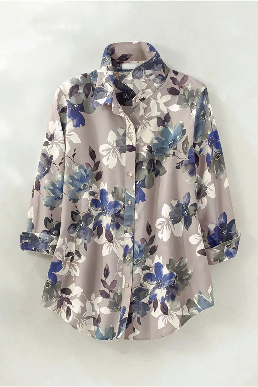 Floral Mist 3/4-Sleeve No-Iron Shirt
