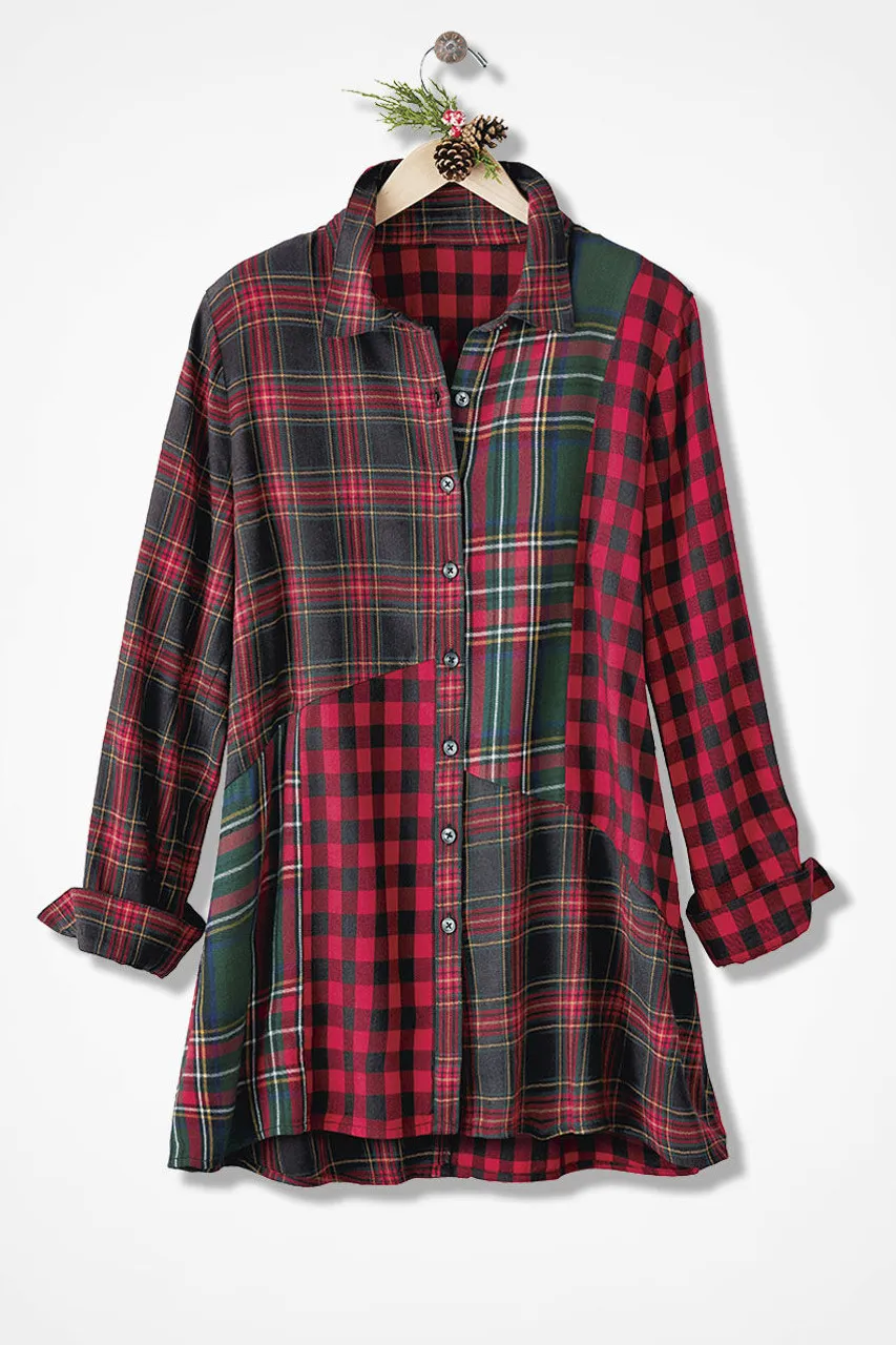 Our Into the Mix Plaid Tunic is three times the energy and fun – a trio of plaids pieced into a happy mix. Imported.