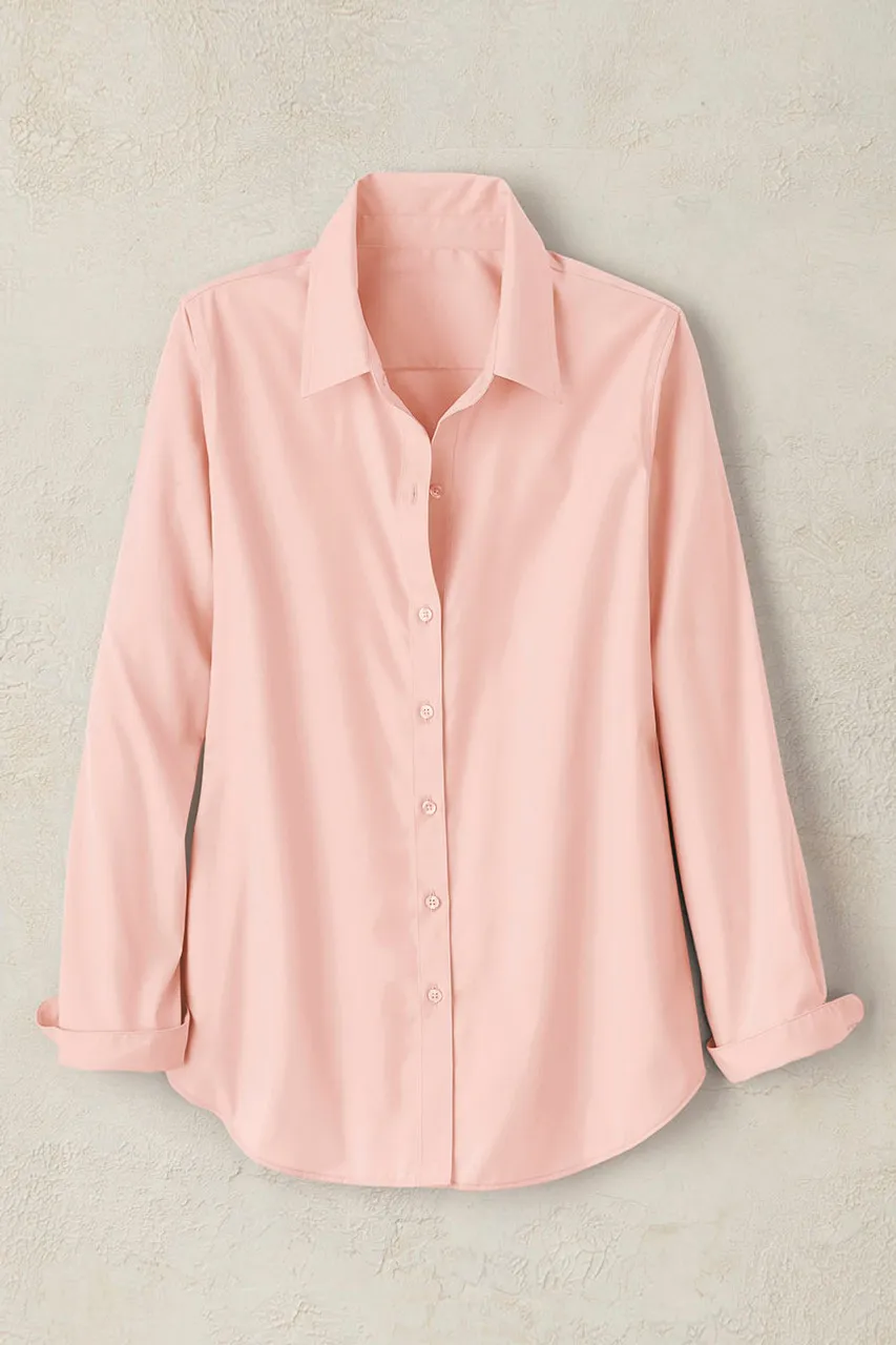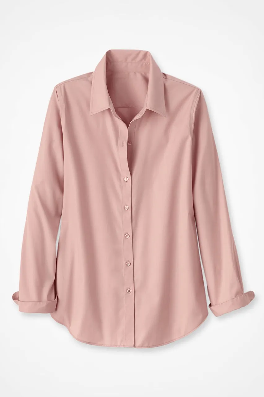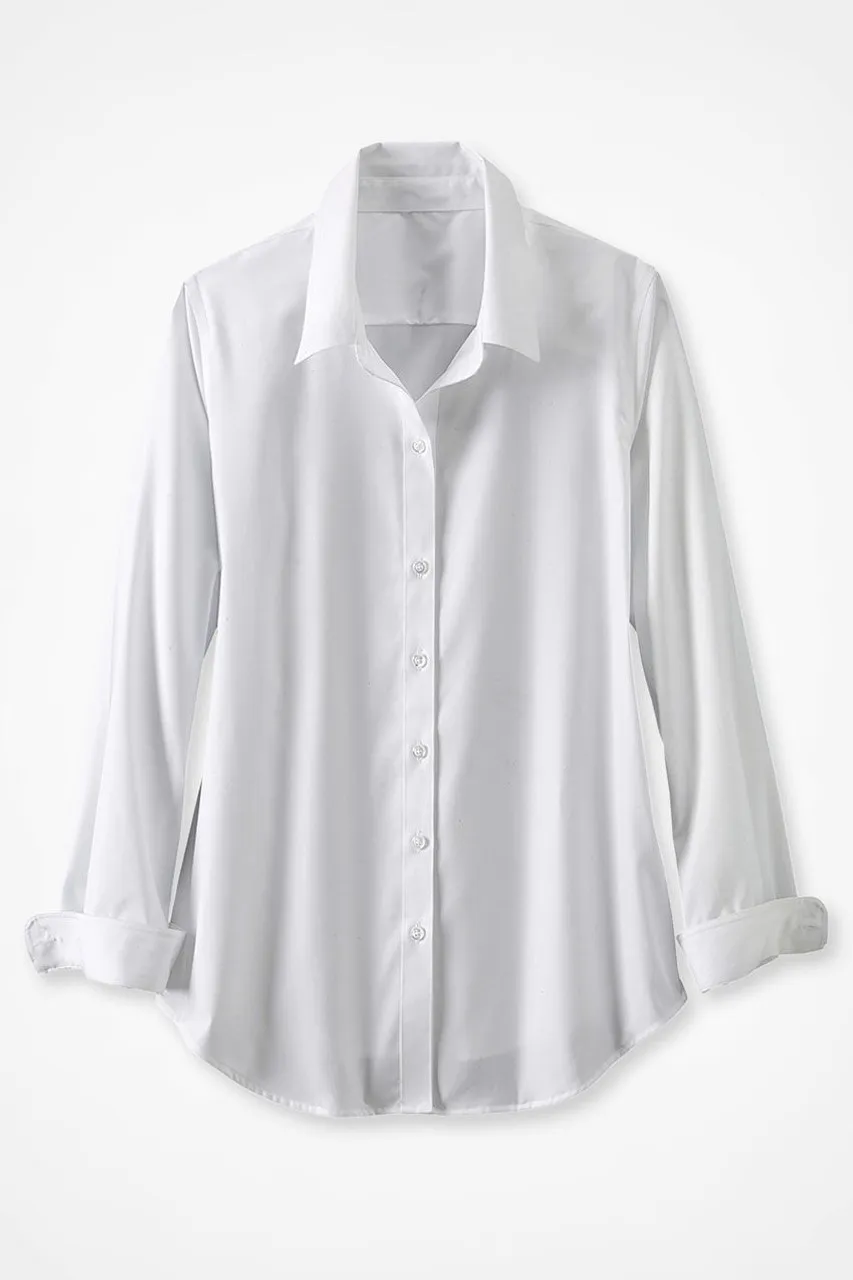 This button-down no-iron shirt is our bestselling favorite in wrinkle-free cotton, perfectly versatile for tucking, layering or wearing solo. Reinforced placket, curved hem. Imported.