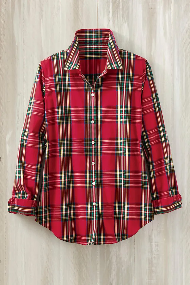 A bright, cheerful plaid in our wrinkle-free 100% cotton, for tucking, layering or wearing solo.