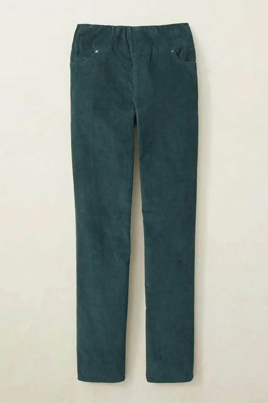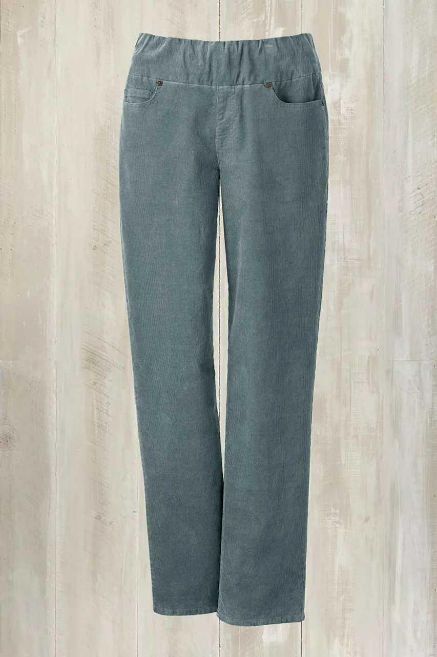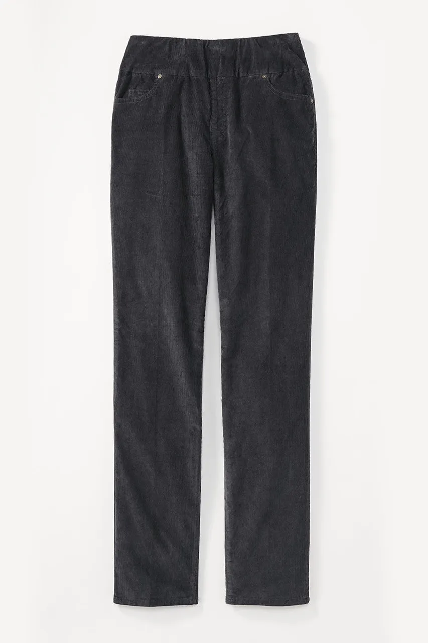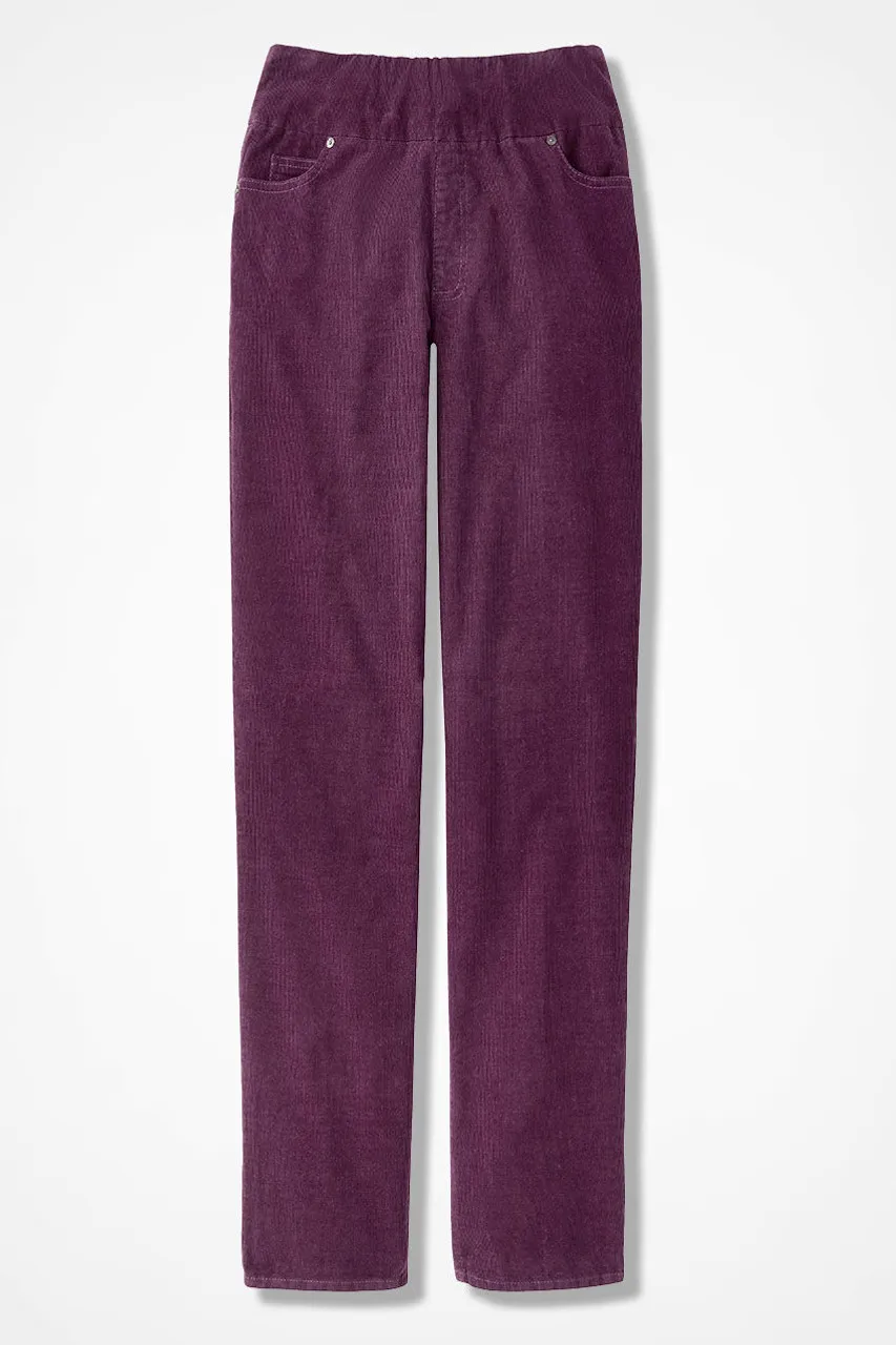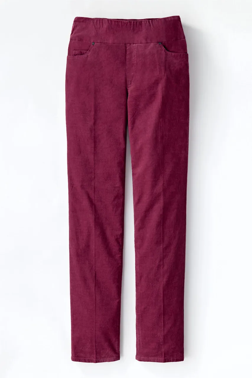Velvety-soft cords with a touch of stretch. Wide comfort waistband, faux stitched fly, 5-pocket styling.