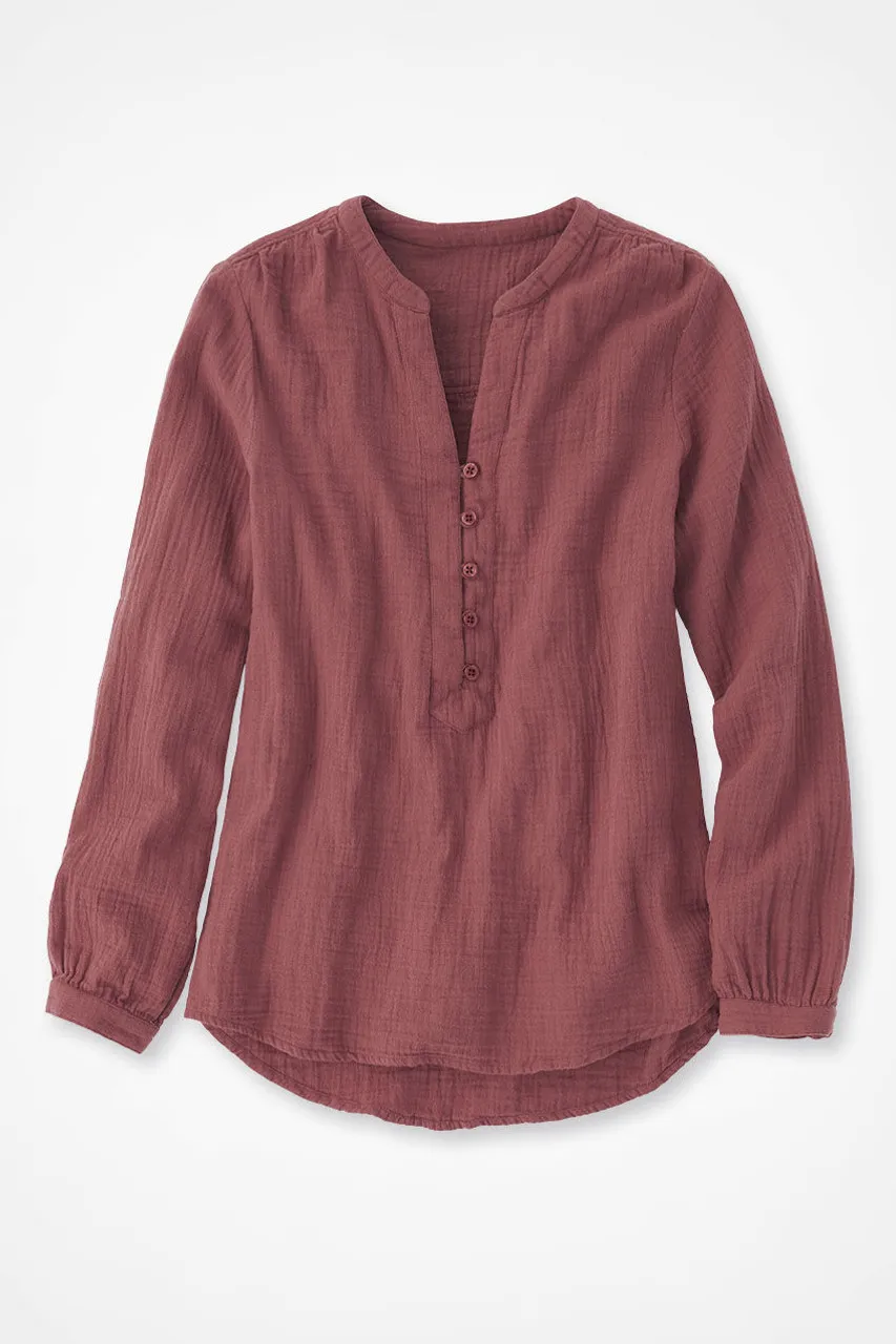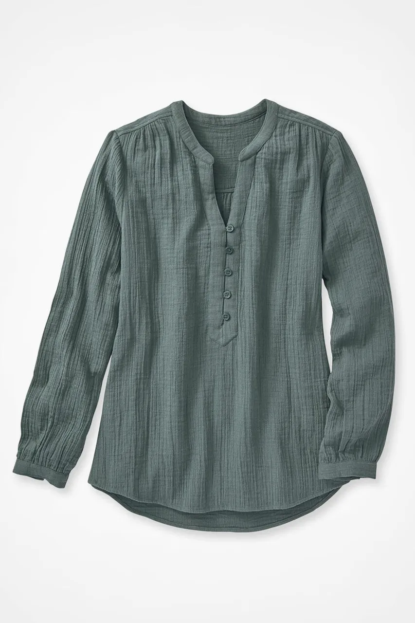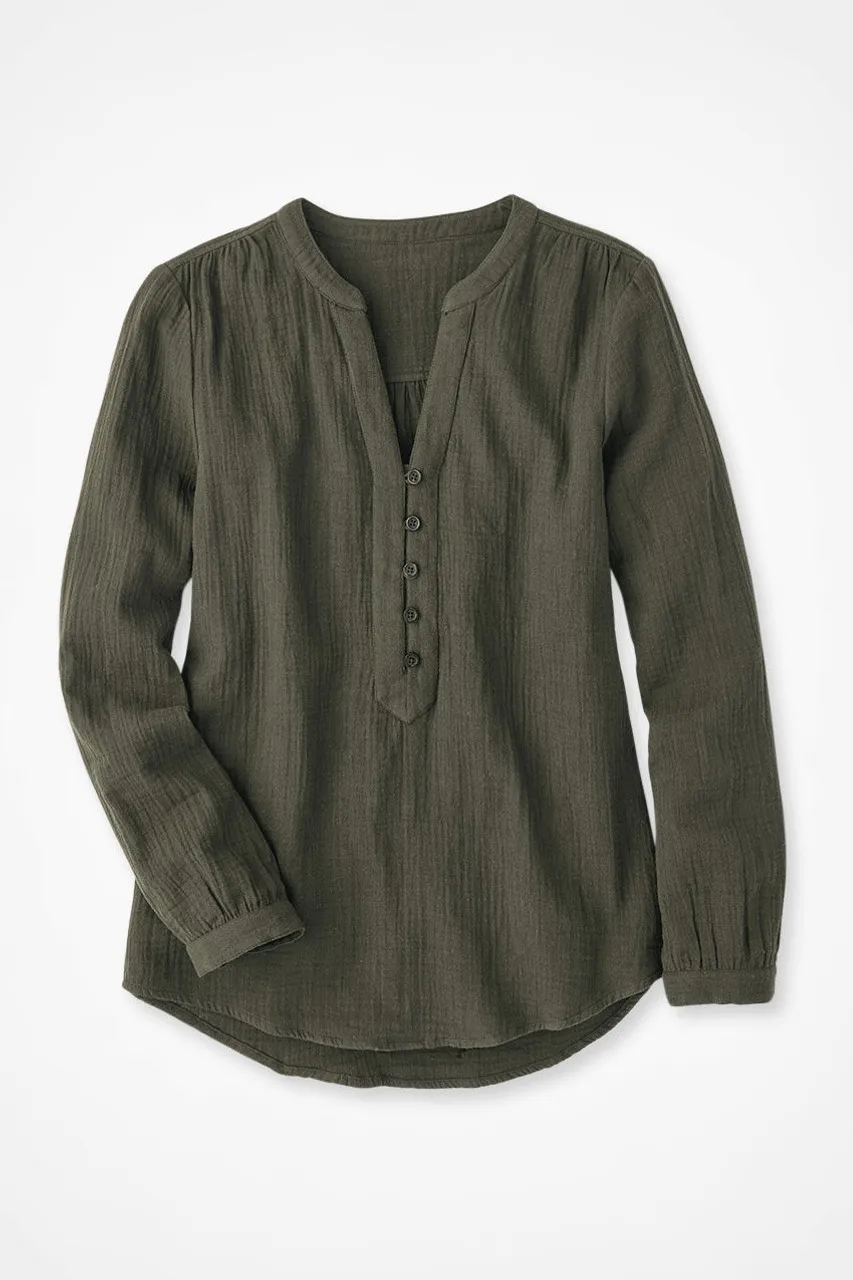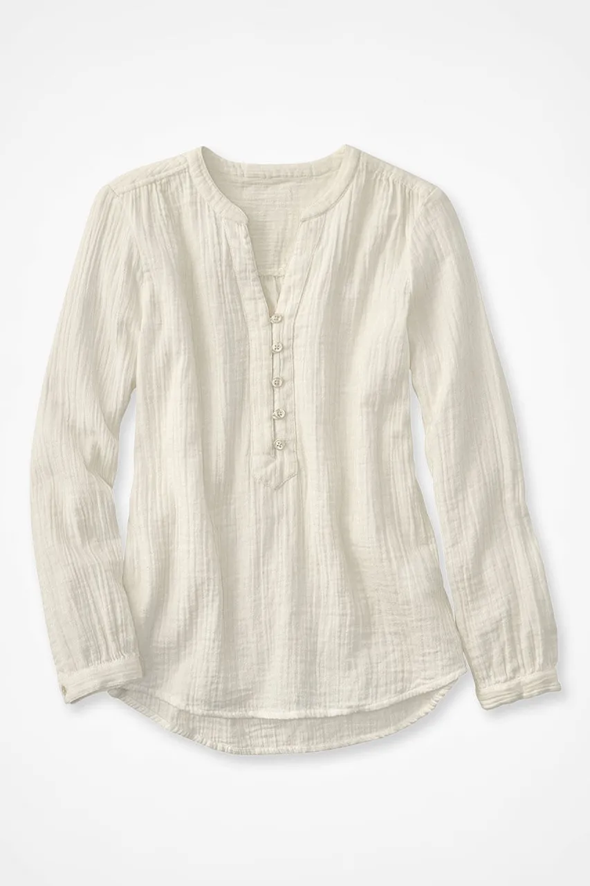 Make summer a breeze. Airy, textured cotton and a much-loved silhouette make this pullover a natural go-to for warmer days. Notched V-neck with partial button placket. Imported.