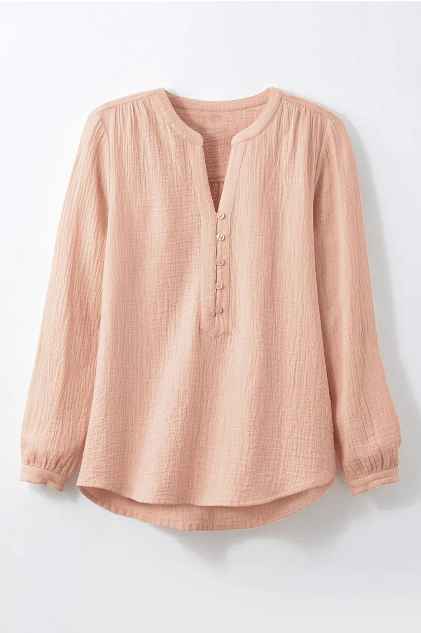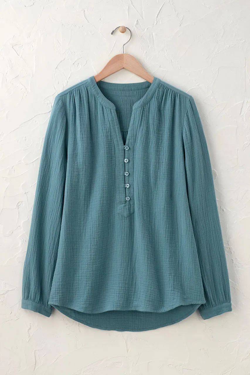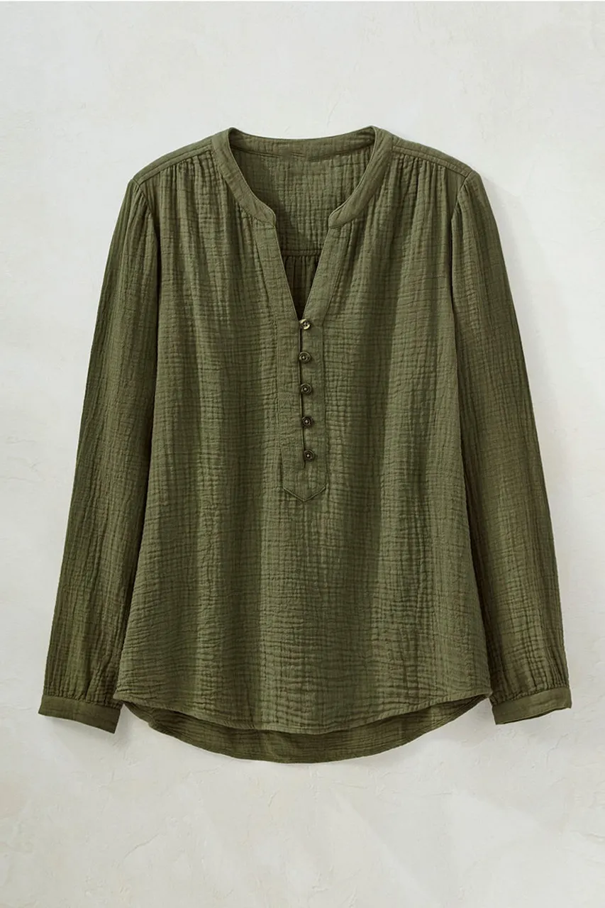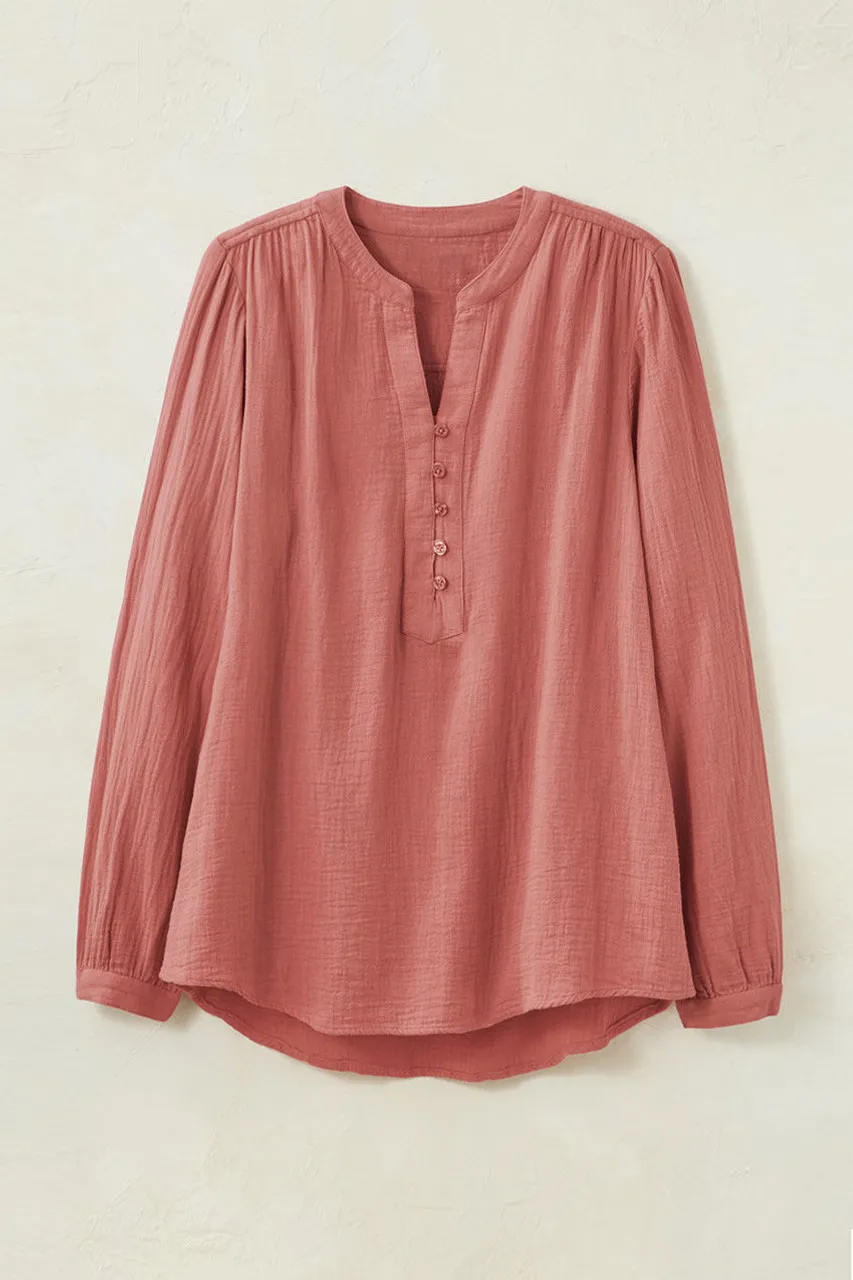 Make summer a breeze. Airy, textured cotton and a much-loved silhouette make this pullover a natural go-to for warmer days. Notched V-neck with partial button placket. Imported.
