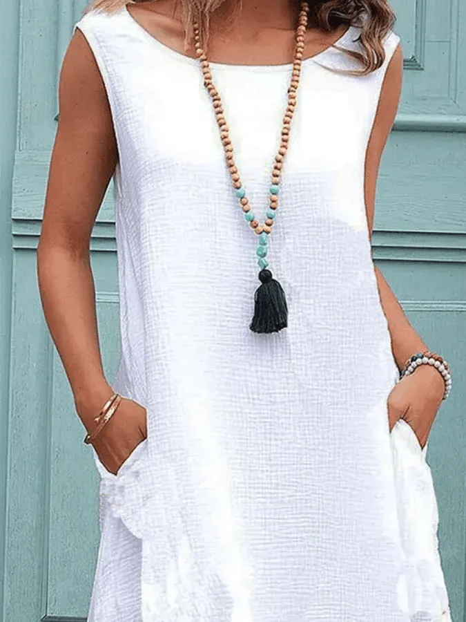 Women's Cotton Linen Solid Color Sleeveless Dress