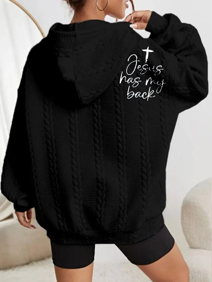 Women's Faith Jesus Has My Back Printed Casual Cable Hoodie