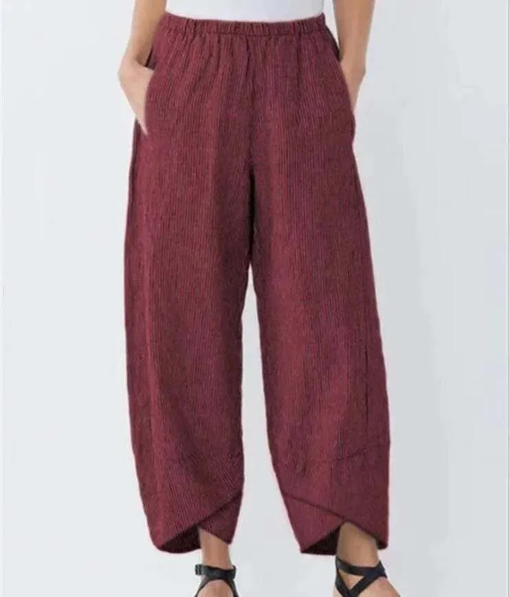 This is a casual Ninth Pants made from high quality, eco-friendly natural cotton and linen fabric.Have a soft,elasticated waistband for a great fit. With two angled side-pockets.In six great colours that will work across your wardrobe.Wearing it will not only give you a comfortable and relaxed wearing experience, but also enhance your elegance.