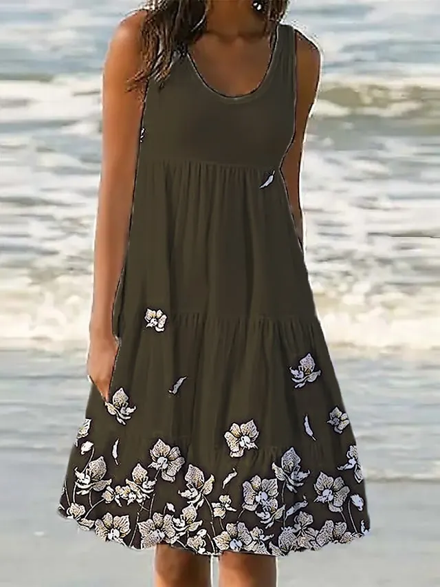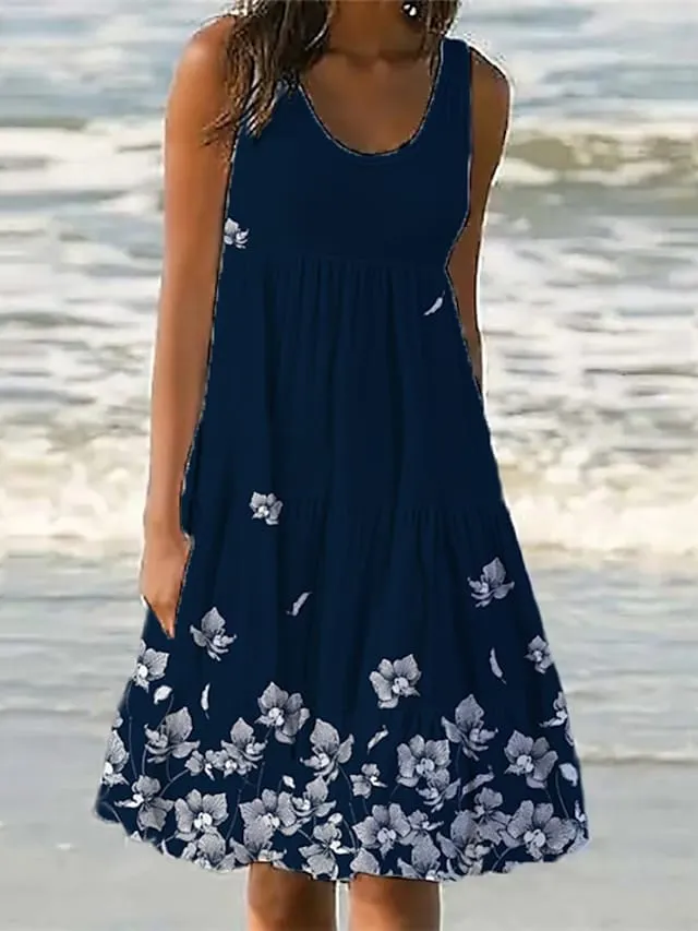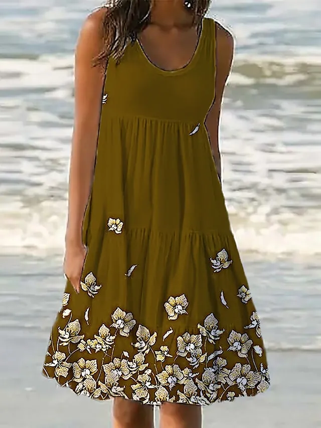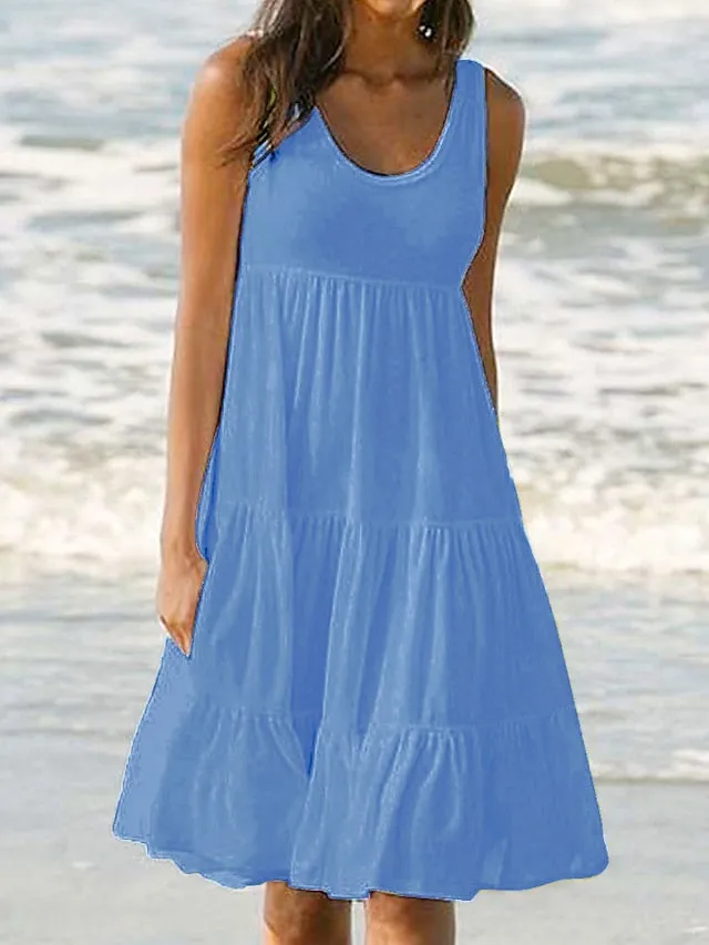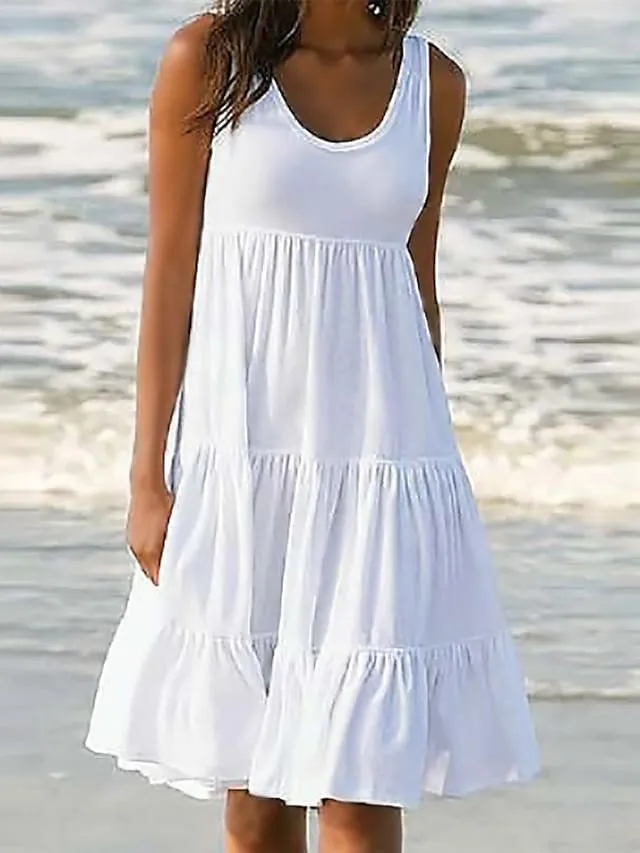 Gender:Women's,Style:Casual,Basic,Occasion:Beach,Daily,Vacation,Dresses Type:White Dress,Sundress,Neckline:Crew Neck,Fabric:Polyester,Design:Pleated,Ruched,Sleeve Length:Sleeveless,Elasticity:Micro-elastic,Look After Me:Hand wash,Machine wash,Pattern:Pure Color,Season:Summer,Spring,Fit Type:Regular Fit,Dress Length Type:Midi Dress,2022 Trends:Boom Sale Dress,