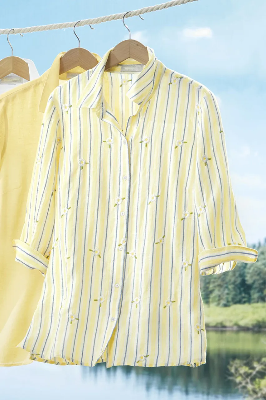 Tiny florals and sunny stripes, on our lightweight, natural European-grown linen – airy to the touch, cool and absorbent, so it feels fresh all day long. Great as a layer or on its own.