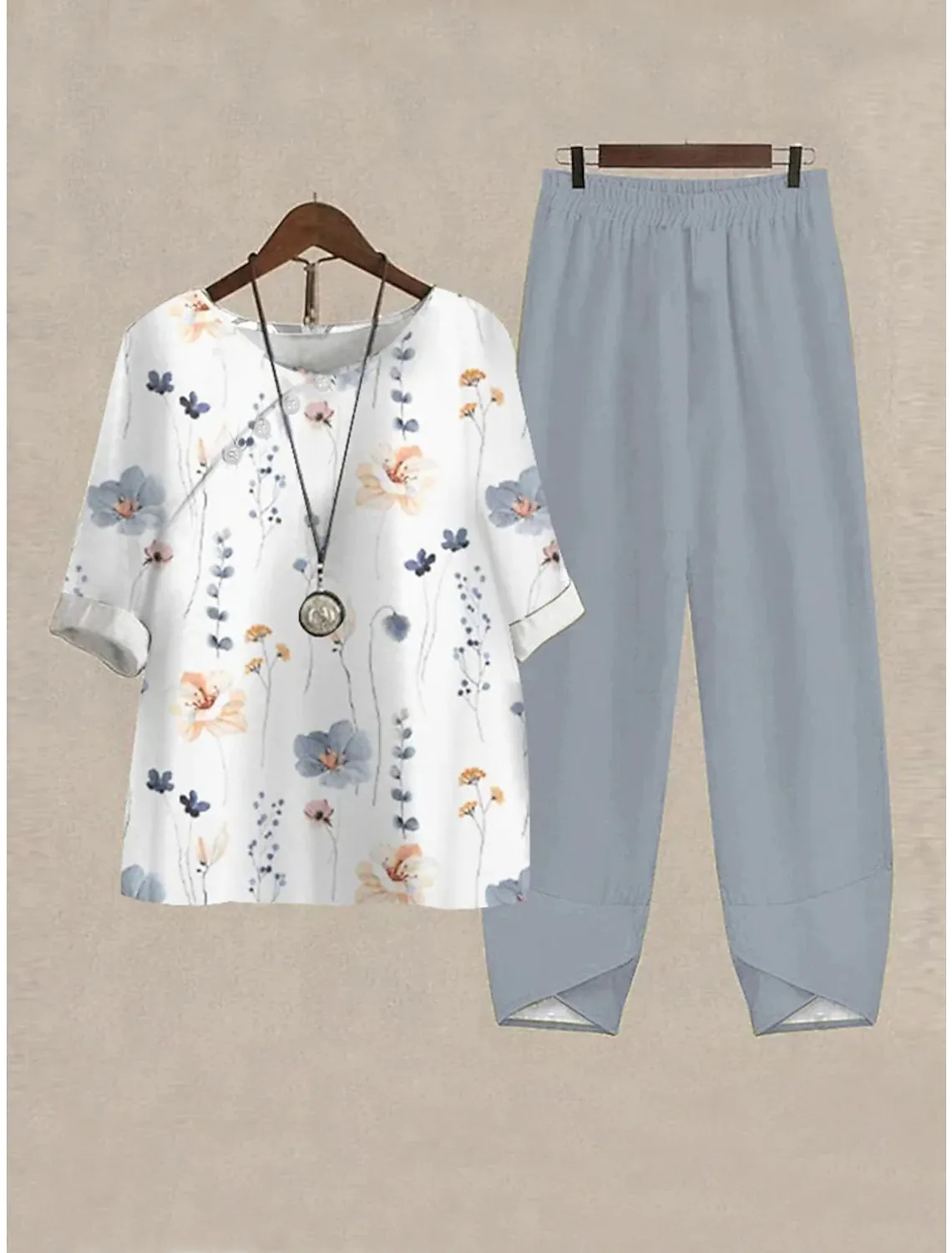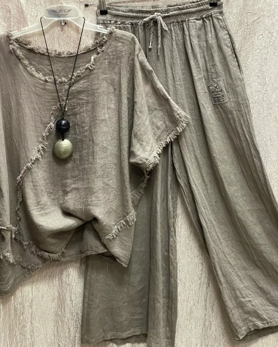 CASUAL PURE COLOR DECORATING ROUND NECK SHORT SLEEVE SUIT