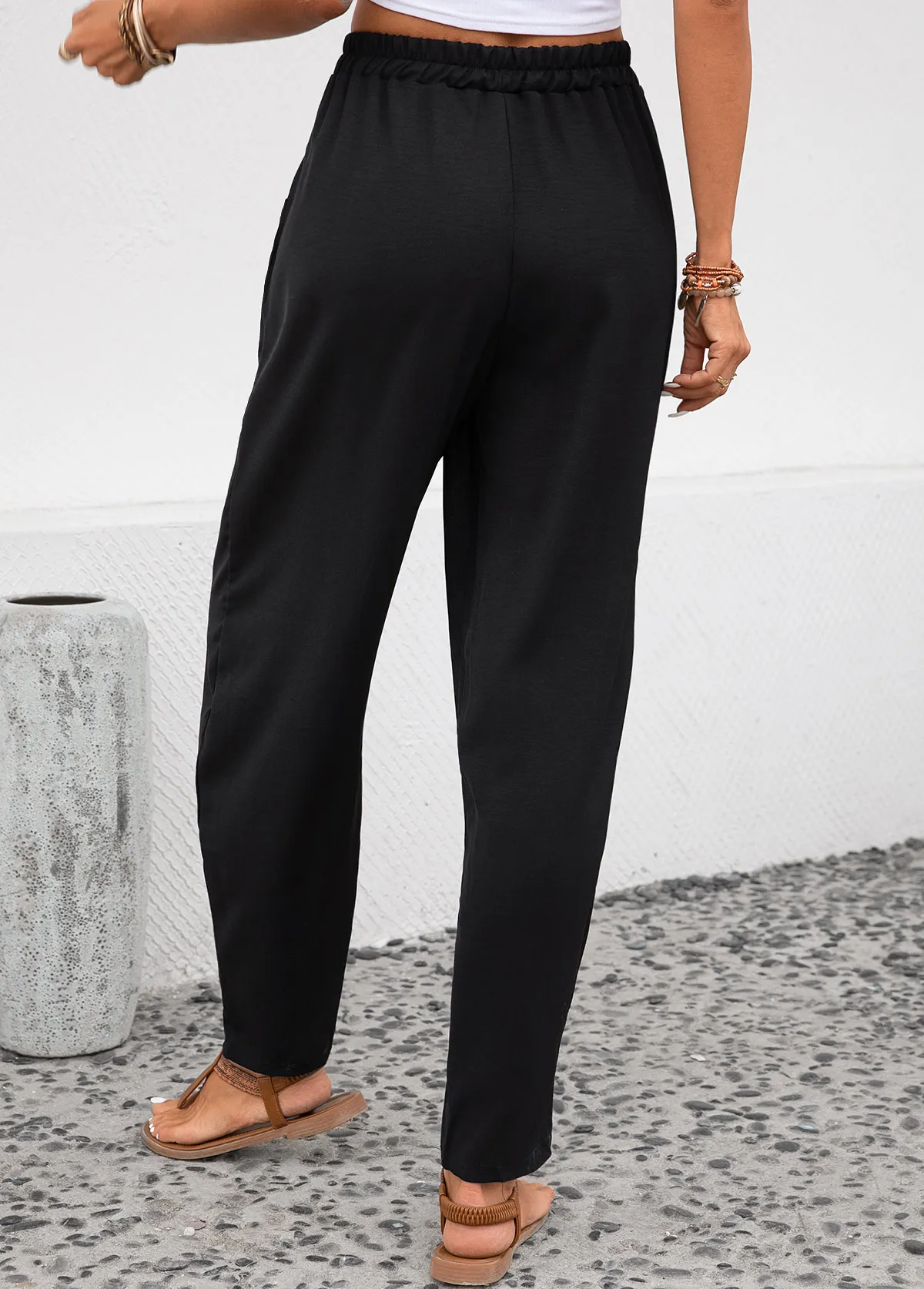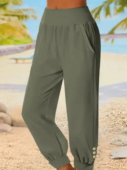 Women's Elastic Waist Solid Color Cotton Linen Loose Trousers