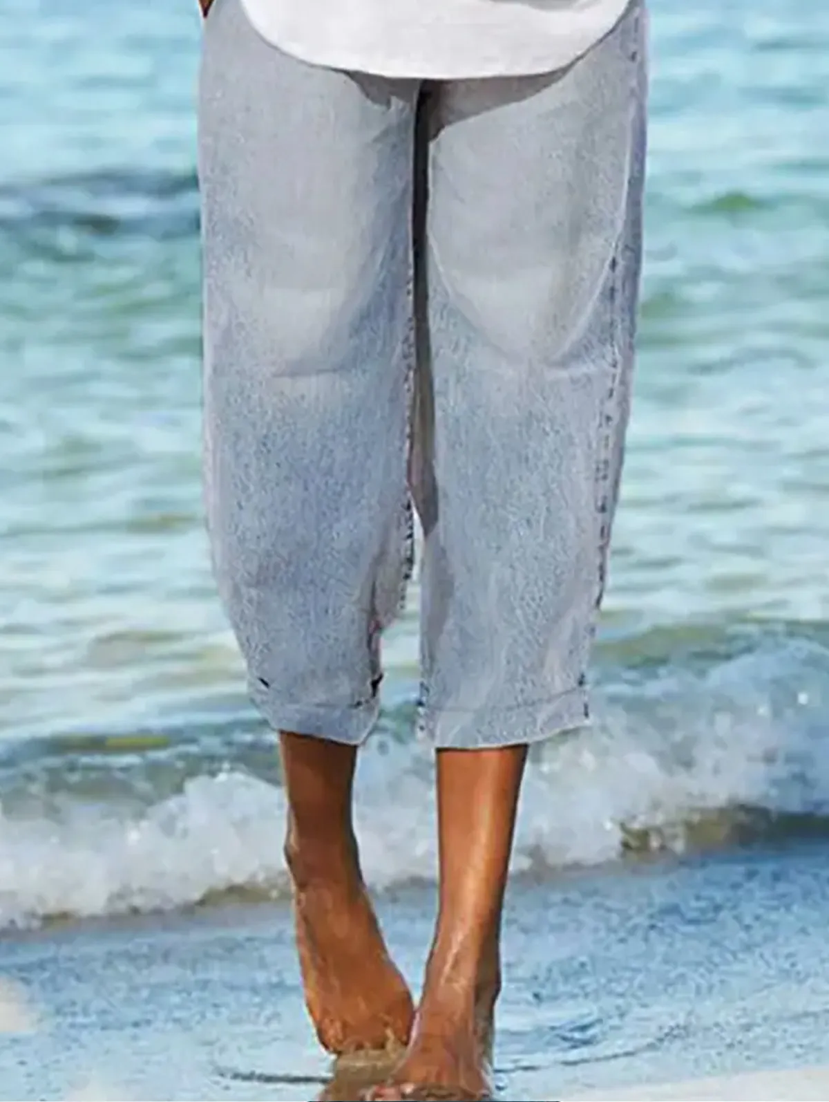 UR Casual Plain Light Washed Loose Capri Denim Pants