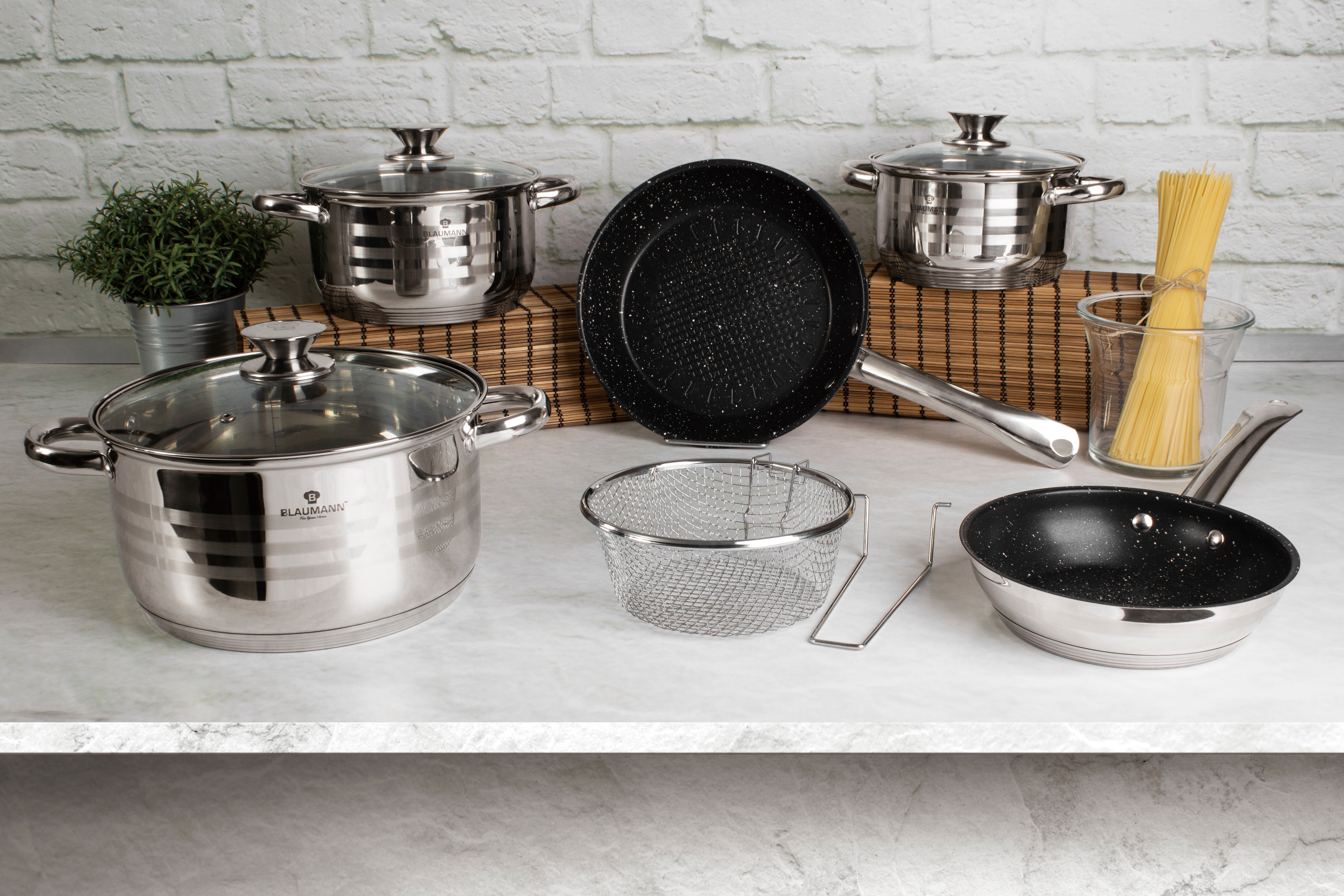 Founded for those who love spending time crafting healthy meals for their kids and high-end courses for friends the Berlinger Haus Stainless Steel Cookware Set offers the ideal balance of style, versatility, and durable craftsmanship. Make cooking fun, enhance the look of your kitchen, and make every meal at home memorable once again. - 5 Layer Bottom