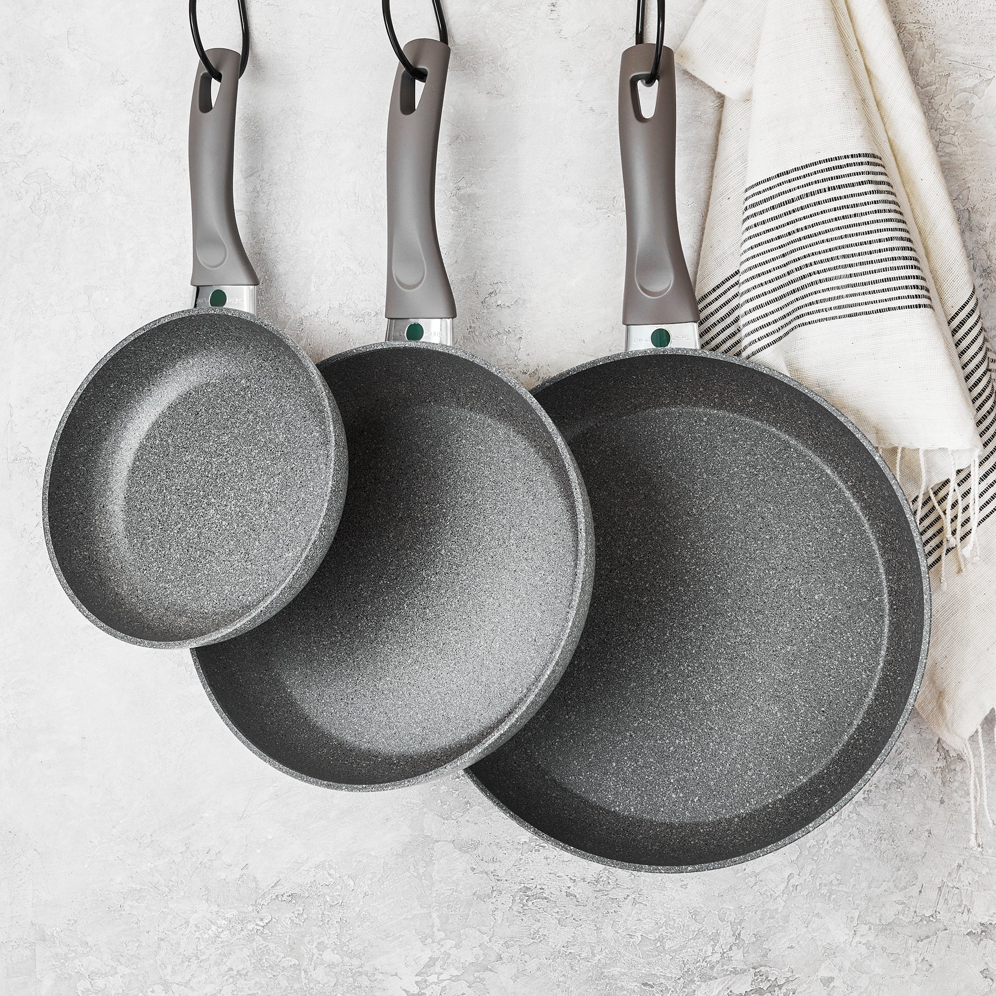 Made in Italy, Modena features an ultra-thick aluminum body that heats up quickly and evenly. The ceramic infused nonstick Granitium coating is metal utensil safe, ensures quick release and easy clean up. And the tight-fitting glass lids lock in moisture and lets you monitor your food as it cooks.