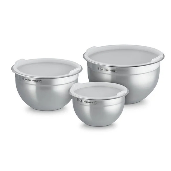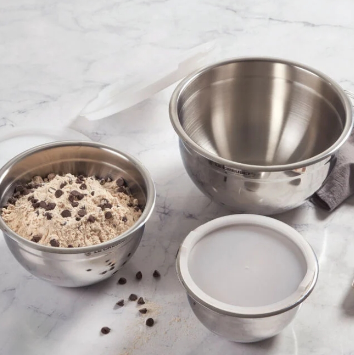 Stainless Steel Mixing Bowls are an essential in the kitchen for everything from prepping ingredients to mixing batters and storing leftovers. The slip-resistant bottom ensures a stable base, while the accompanying lids provide an airtight seal. Designed to nest inside each other for easy storage, durable stainless steel is easy to clean and doesn’t absorb odors or flavors.