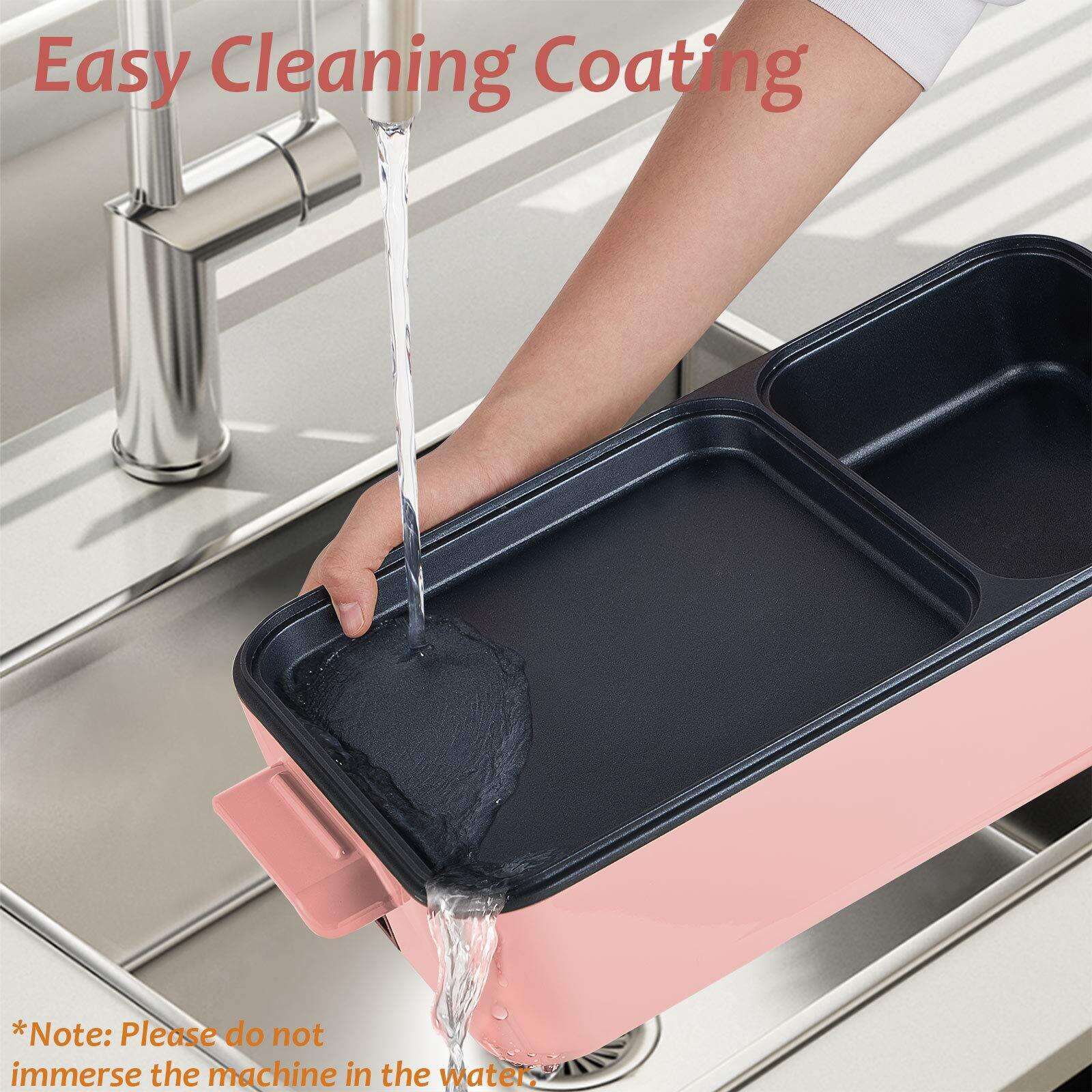 - [Non-Stick Feature] - This appliance has a healthy and Eco-friendly coating that contains no harmful chemicals even in high temperature. This coating offers superior food release, preventing food from sticking so that you can use less oil than uncoated cookware and easy to clean after use. Also, it produces less smoke than traditional BBQ. You can enjoy the hotpot and BBQ in a healthier way.