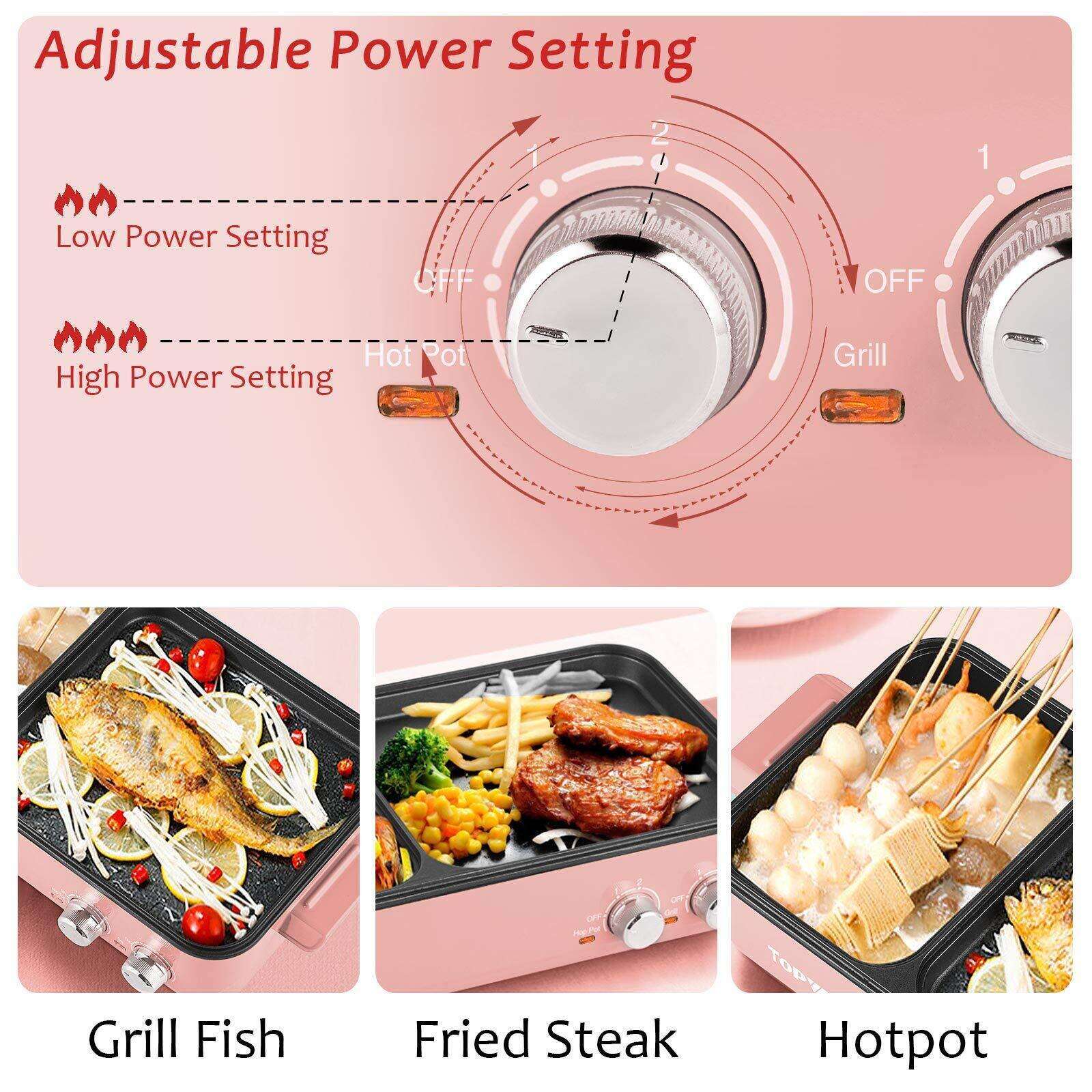 - [2 IN 1 Hot Pot & Grill] - Topwit electric hot pot with grill combines electric hotpot and grill innovatively, allowing you to enjoy hotpot and grilling at the same time. It is perfect for Korean BBQ, grilling, frying, soup and hotpot. Dual purpose, offers double fun!