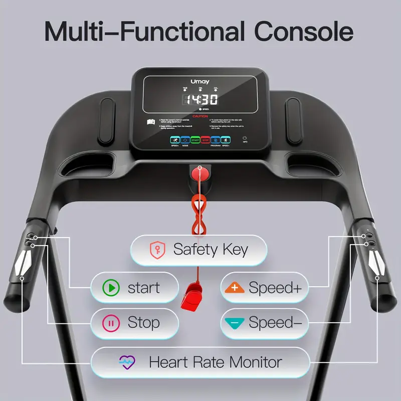 Multi-Functional Console: Our intelligent console boasts a range of features, including heart rate detection and 12 preset levels. Keep track of essential data such as speed, distance, time, and calories burned for a comprehensive fitness experience.