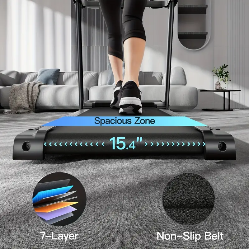 Spacious Running Area: Enjoy a spacious 40.2"x15.4" running belt, providing a safe and unrestricted exercise space for you and your family. Exercise freely and confidently with ample room on our treadmill.