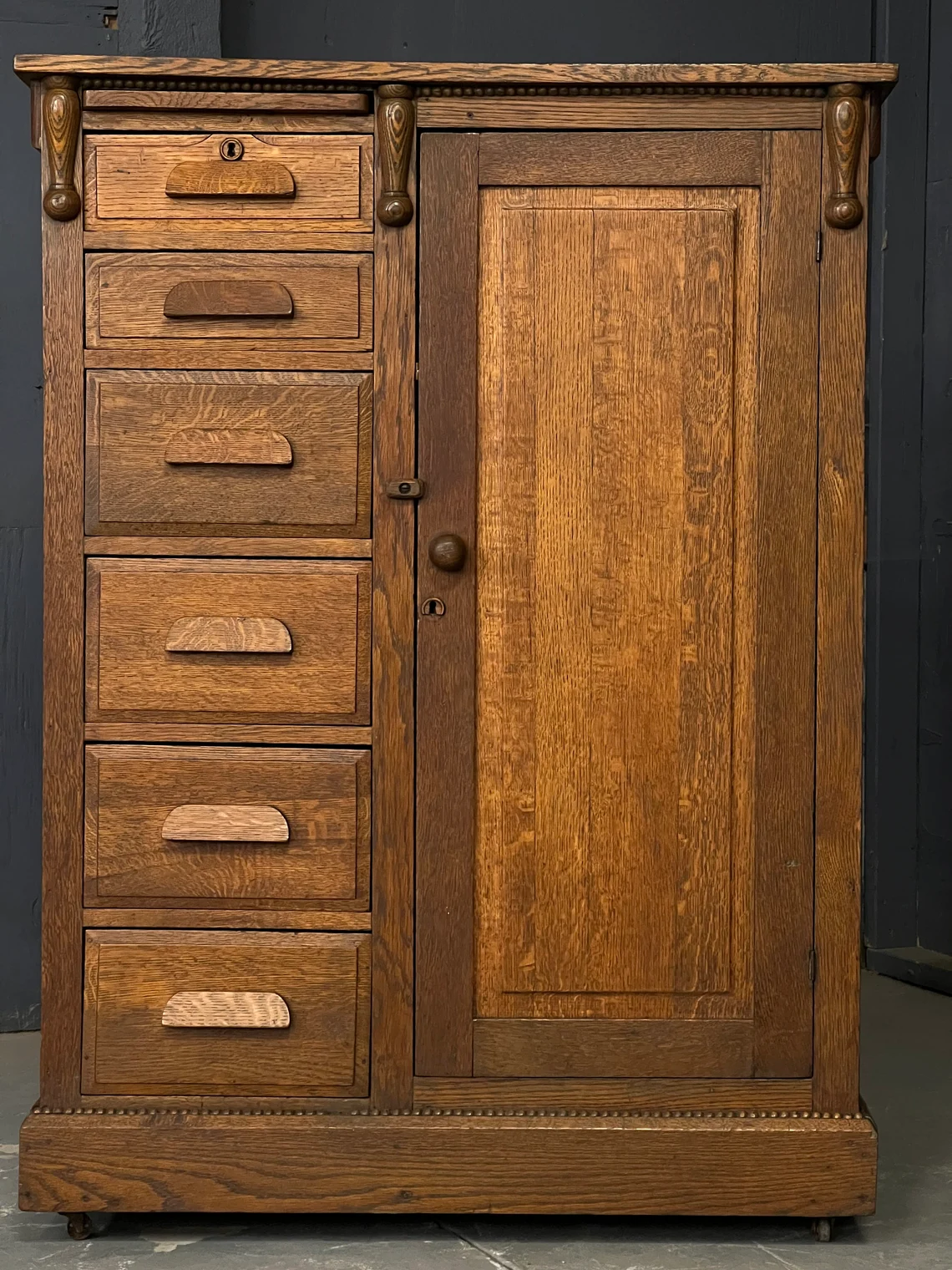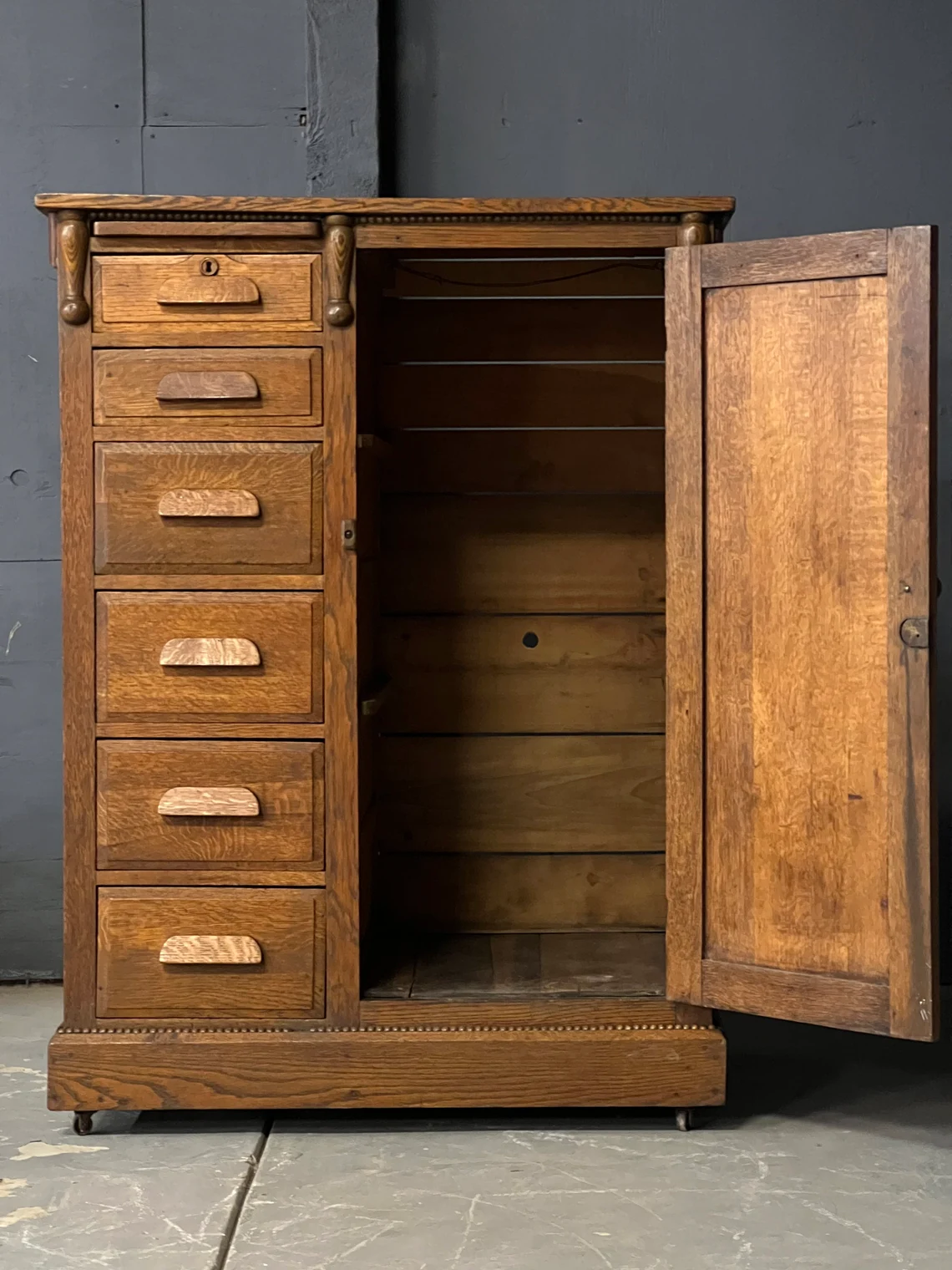 • Antique Railroad Cabinet, Oak Wardrobe Cabinet, Vintage File Cabinet, Multi Drawer Cabinet, Apothecary Cabinet