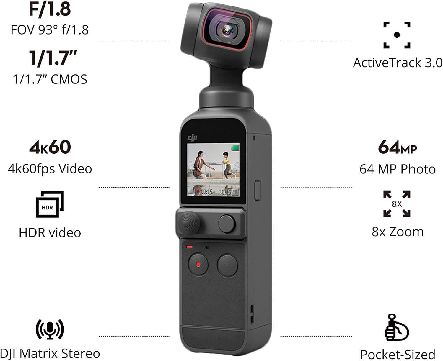 - Focused on the Action - No matter how you move, DJI Pocket 2 keeps you and your friends in the shot with ActiveTrack 3.0.