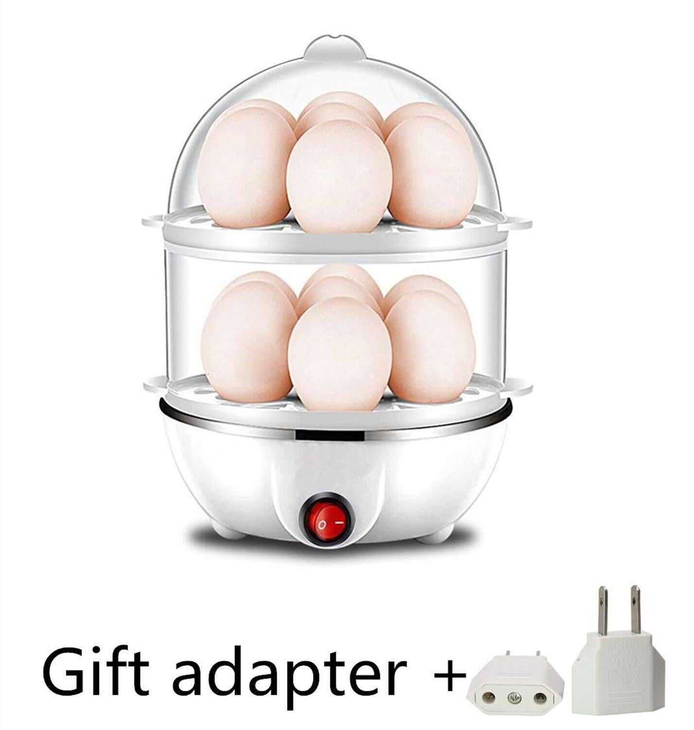 Multi-function egg pot:/strong>This double-layer egg slasher can prepare a healthy and nutritious breakfast for your family quickly and easily in a matter of minutes. This is a versatile double-layer egg maker that can steam 7-14 eggs at the same time. In addition to steamed eggs, you can also heat milk, steam corn, vegetables, seafood, tortillas and more!