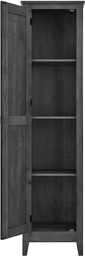 Farmington Wide Storage Cabinet is a stylish way to stay on top of your organization. The rustic barn style design and sleek tapered feet gives the look of an old weathered cabinet but the sturdy laminated particleboard and MDF make this cabinet the perfect piece to house your home office supplies, extra linens, seasonal clothing, nonperishable food and more! Open up the door to 4 spacious shelves, 2 adjustable, to fit items of differing sizes. The weathered brown finish with gray undertones will bring a nice rustic appeal to your space. The Farmington Cabinet is recommended to be assembled and moved by 2 adults. A wall anchor kit is provided for extra safety and security. After assembled, this cabinet measures to be 71.9”H x 18.2”W x 15.8”D.