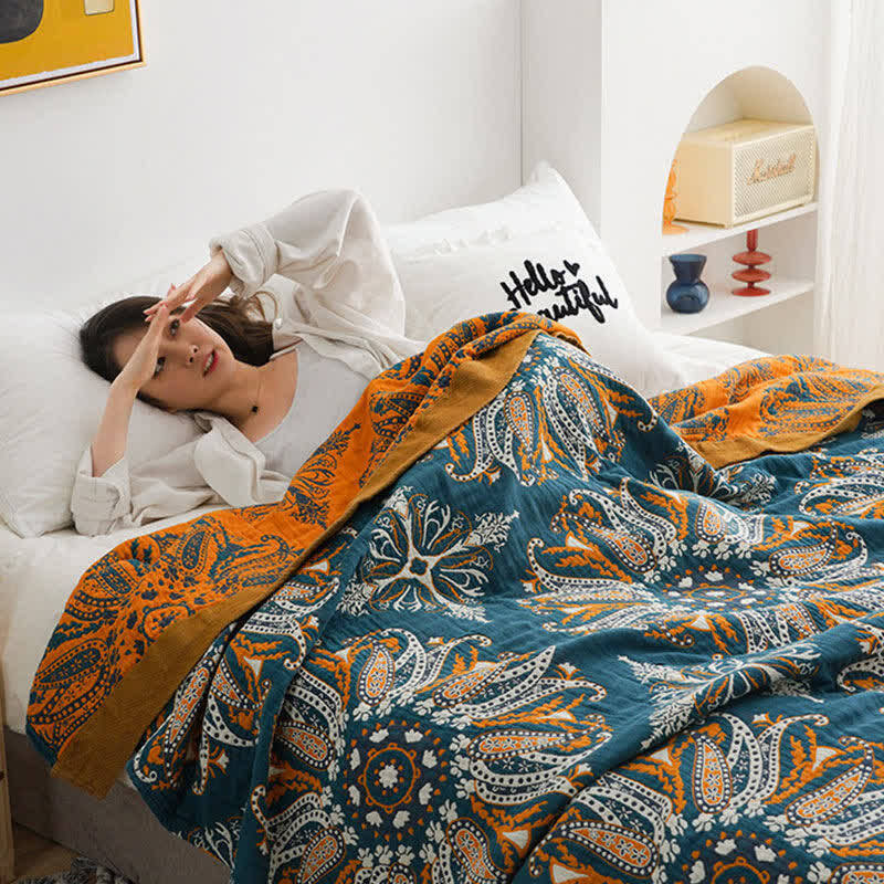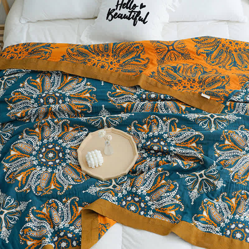 Flower Cotton Gauze Quilt Reversible Blanket