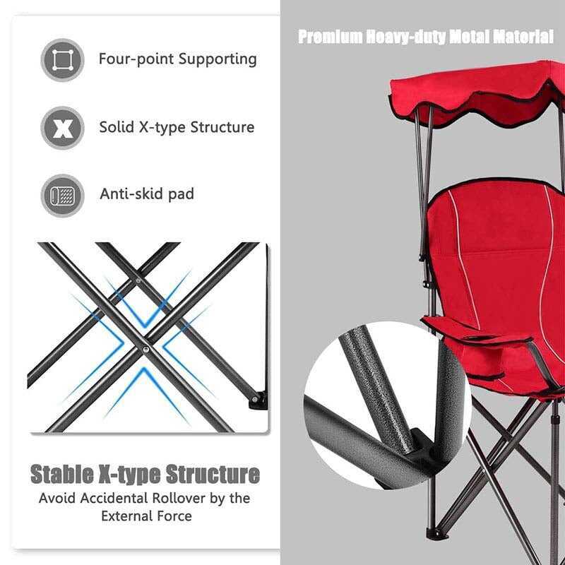 • Easy to Set up: The foldable design allows you to use this lawn canopy chair immediately without the hassle of assembly. It is easy to set up and no tools are required. Really convenient for outdoor use.