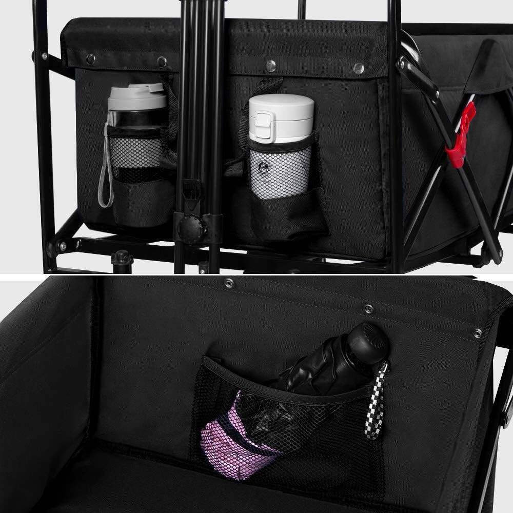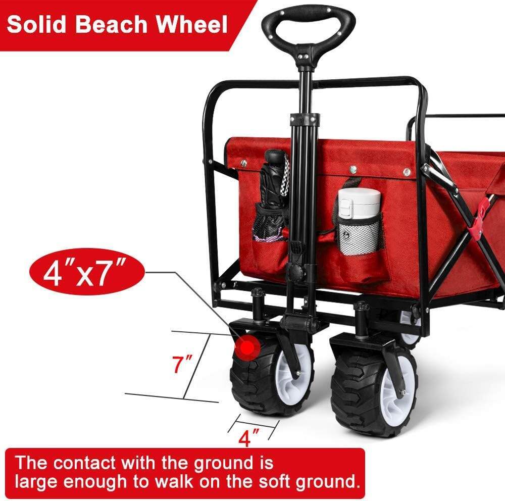 - Large capacity : large load folding beach wagon cart outside dimensions approx 34.3"lx20"wx26.4"h. The collapsible utility wagon cart inside size is 31"lx17.7"wx10.6"h. Ground to the top of the handle is 38.6". Two cups in the fabric cup holders are not included.