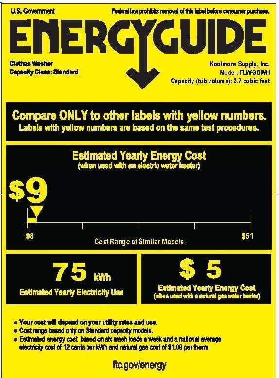 • Energy Efficiency Wash Cycles – This KoolMore washer machine designed with a High Energy Efficiency (HE) technology to help reduce operating costs without sacrificing washing effectiveness. Important for helping you save money and get clothes clean quickly.